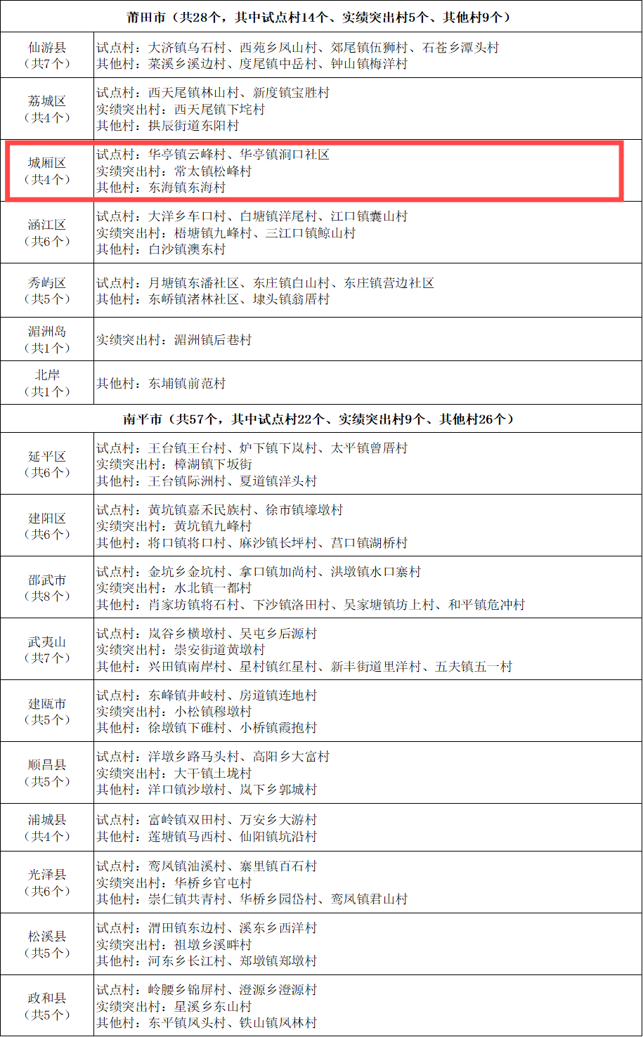 城厢1个镇、4个村(社区)上榜
