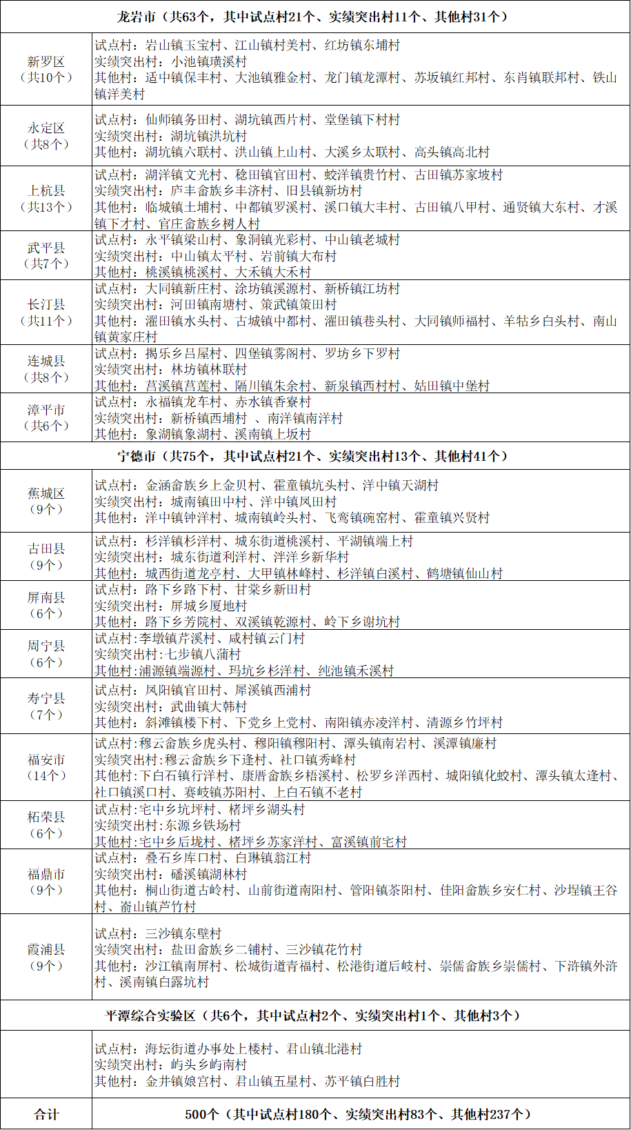 第三批省级乡村振兴示范村创建对象名单(共500个)