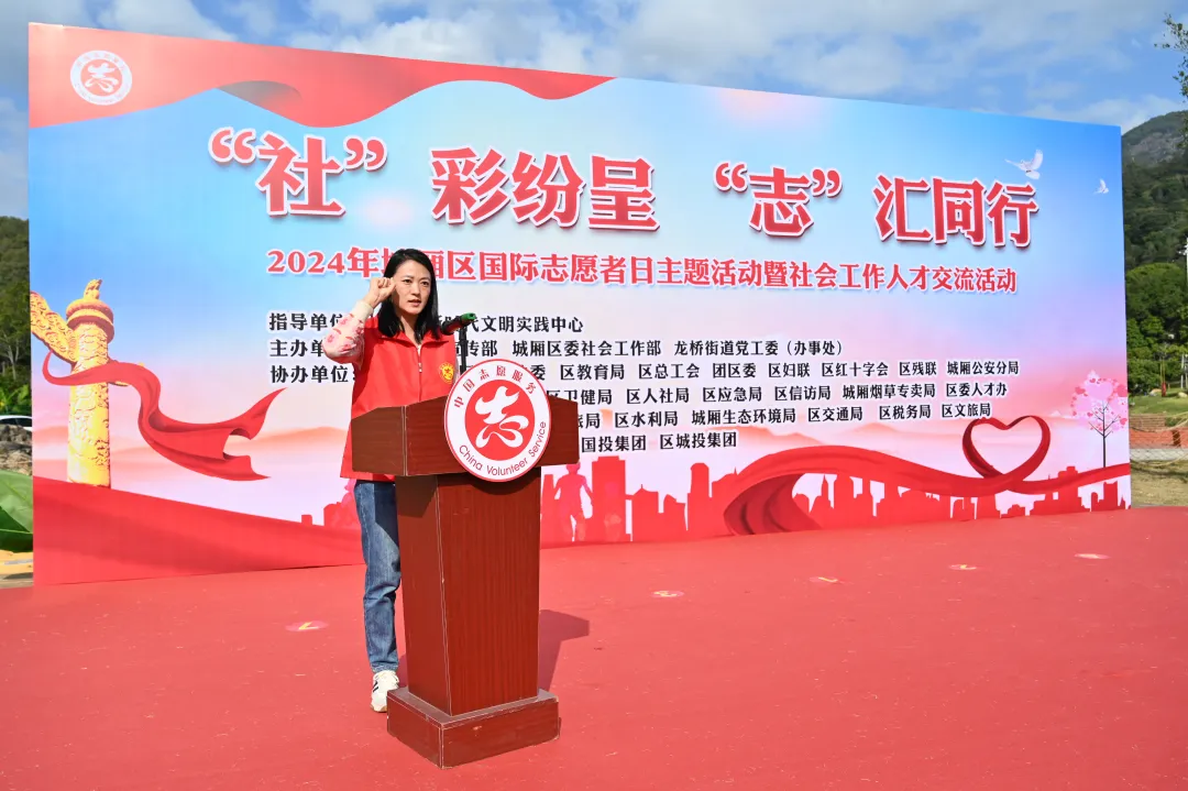 黄云鸿在致辞时,向所有参加活动的来宾和志愿者们表示热烈的欢迎,向所有志愿者致以节日的问候。他指出,近年来,城厢区立足区位优势和资源禀赋,围绕社会所需、群众所盼,充分发挥志愿服务力量,积极开展各类志愿服务活动,志愿服务平台建设不断完善,志愿队伍不断壮大,志愿品牌持续擦亮。他要求,要以此次活动为契机,深入学习宣传贯彻党的二十届三中全会精神,充分发挥志愿服务品牌带动效应,全面推进城厢区新时代文明实践工作,用心用情宣传群众、关心群众、服务群众,继续为加快建设“山水格局、人文宜居”新城厢添砖加瓦。