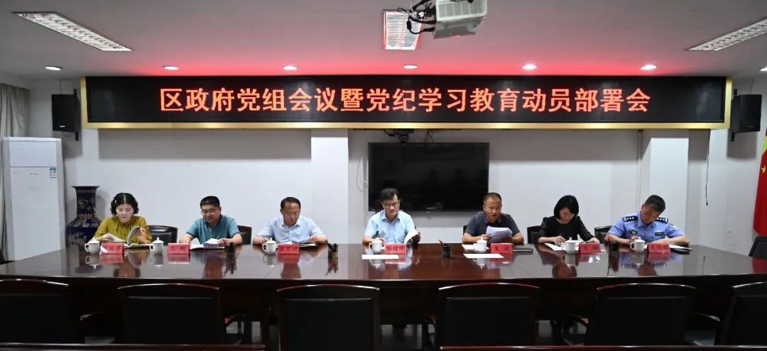 会议指出,要切实提高站位,深刻认识开展党纪学习教育的重大意义。区政府党组要深入学习领会习近平总书记关于党纪学习教育的重要讲话和重要指示精神,切实把思想和行动统一到党中央决策部署上来,以实际行动坚定拥护“两个确立”,坚决做到“两个维护”。要紧扣目标要求,高质量组织开展党纪学习教育。区政府党组要严格对标对表,聚焦学习重点,深入开展自查自纠,做到边学习、边反思,切实把党的各项纪律要求学深学透学到位;同时,要实现学习教育和日常工作互促共进,把党纪学习教育成果转化为攻坚克难、干事创业的强大动力,奋力完成全年各项目标任务。要精心谋划部署,确保党纪学习教育见行见效。区政府党组要带头扛起开展党纪学习教育的政治责任,通过多种形式加强宣传教育,营造浓厚的学习氛围,带动全区政府系统高质量完成党纪学习教育任务,确保党纪学习教育推进有序、措施有力、工作有效。