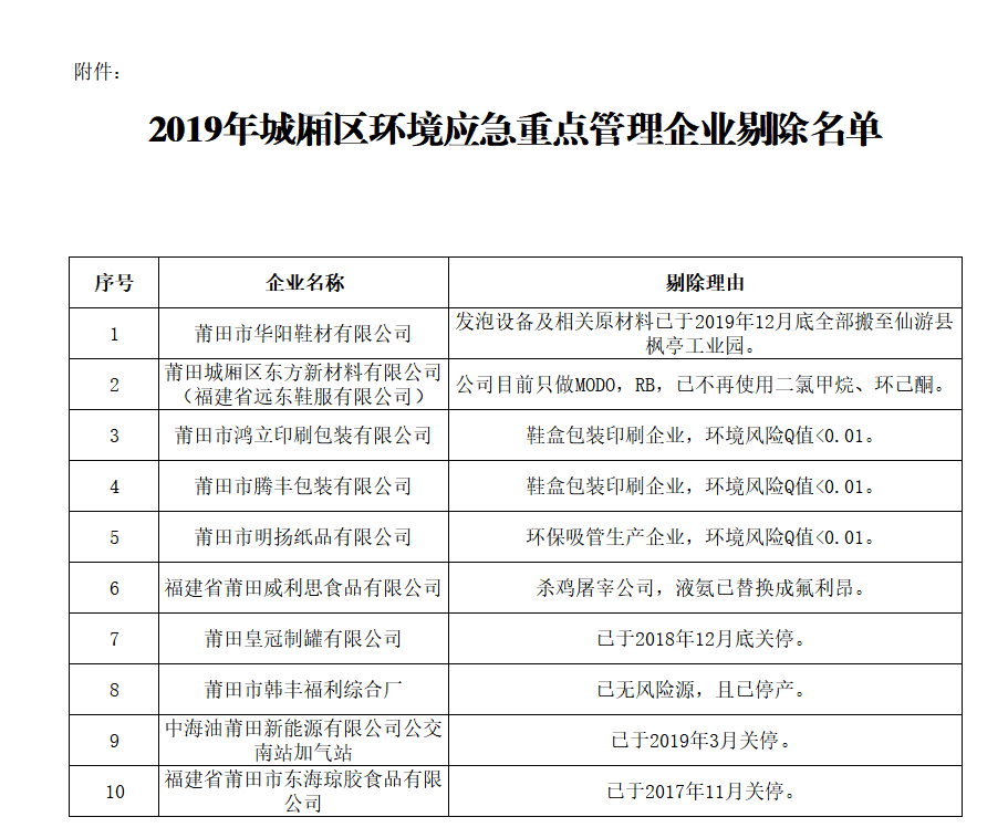 附件:《2019年城厢区环境应急重点管理企业剔除名单》