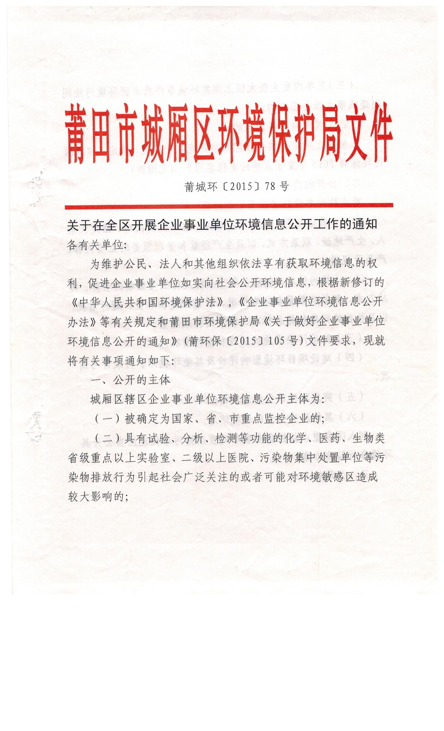 关于在全区开展企业事业单位环境信息公开工作的通知(2015年度)