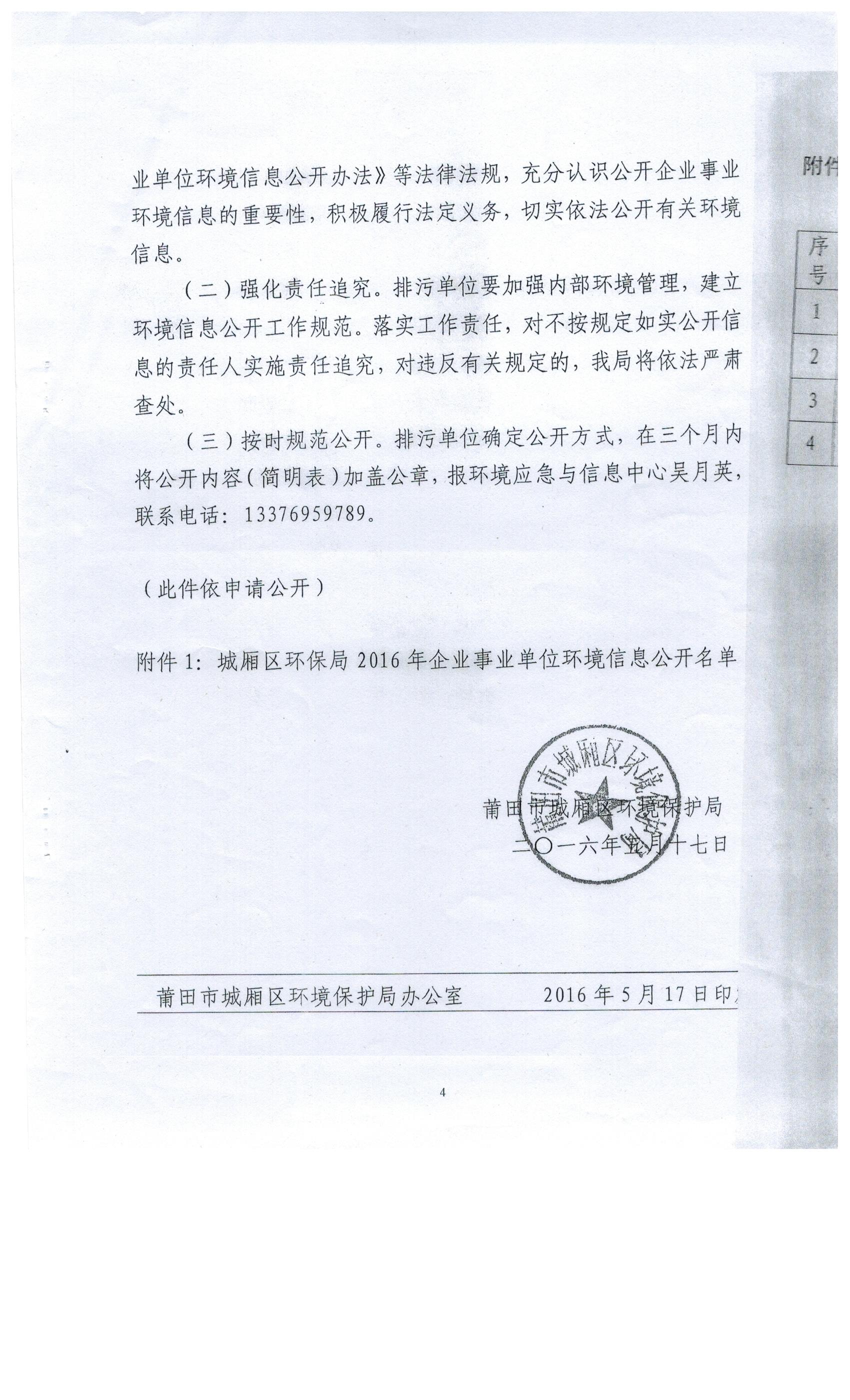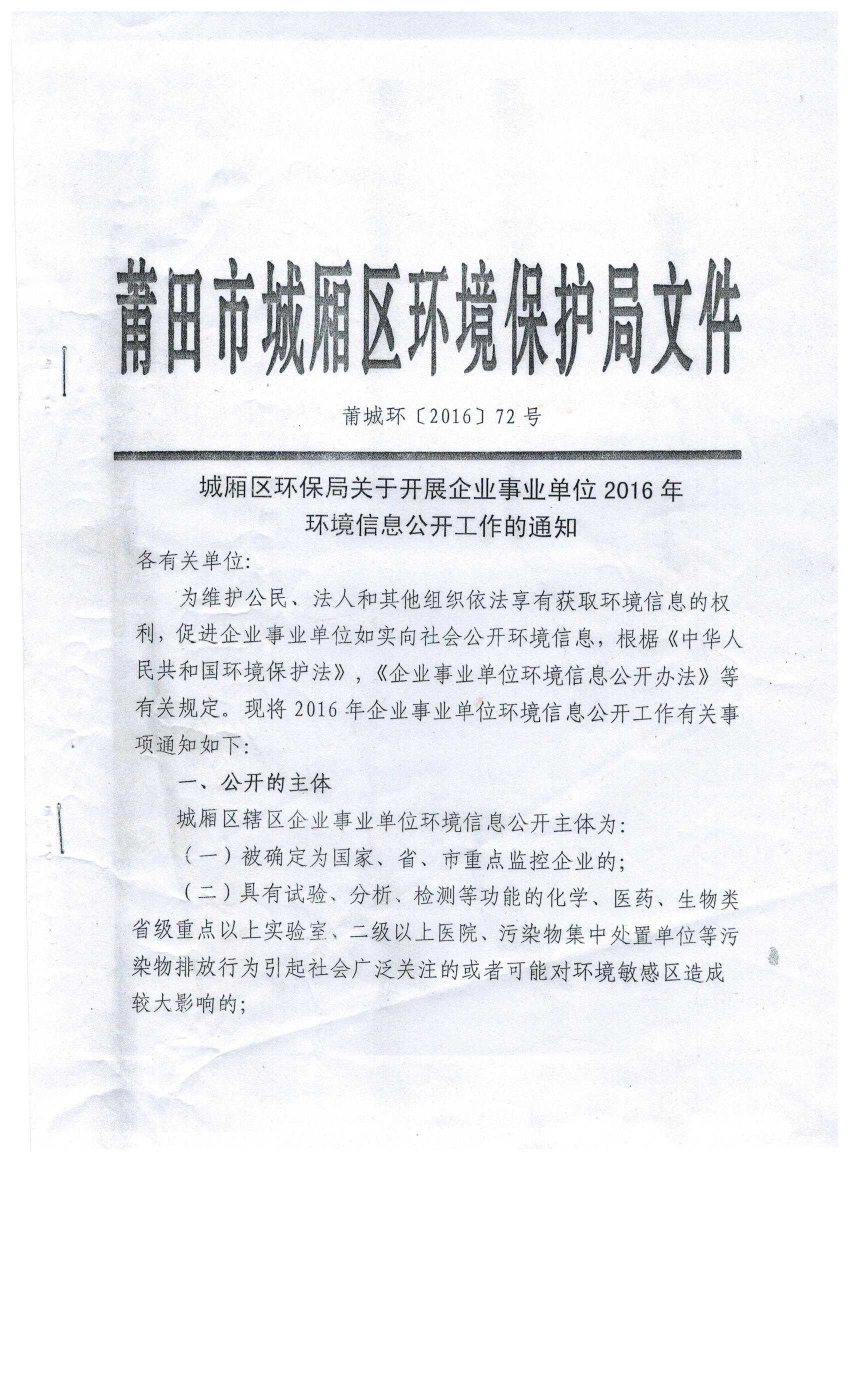 关于开展企业事业单位2016年环境信息公开工作的通知