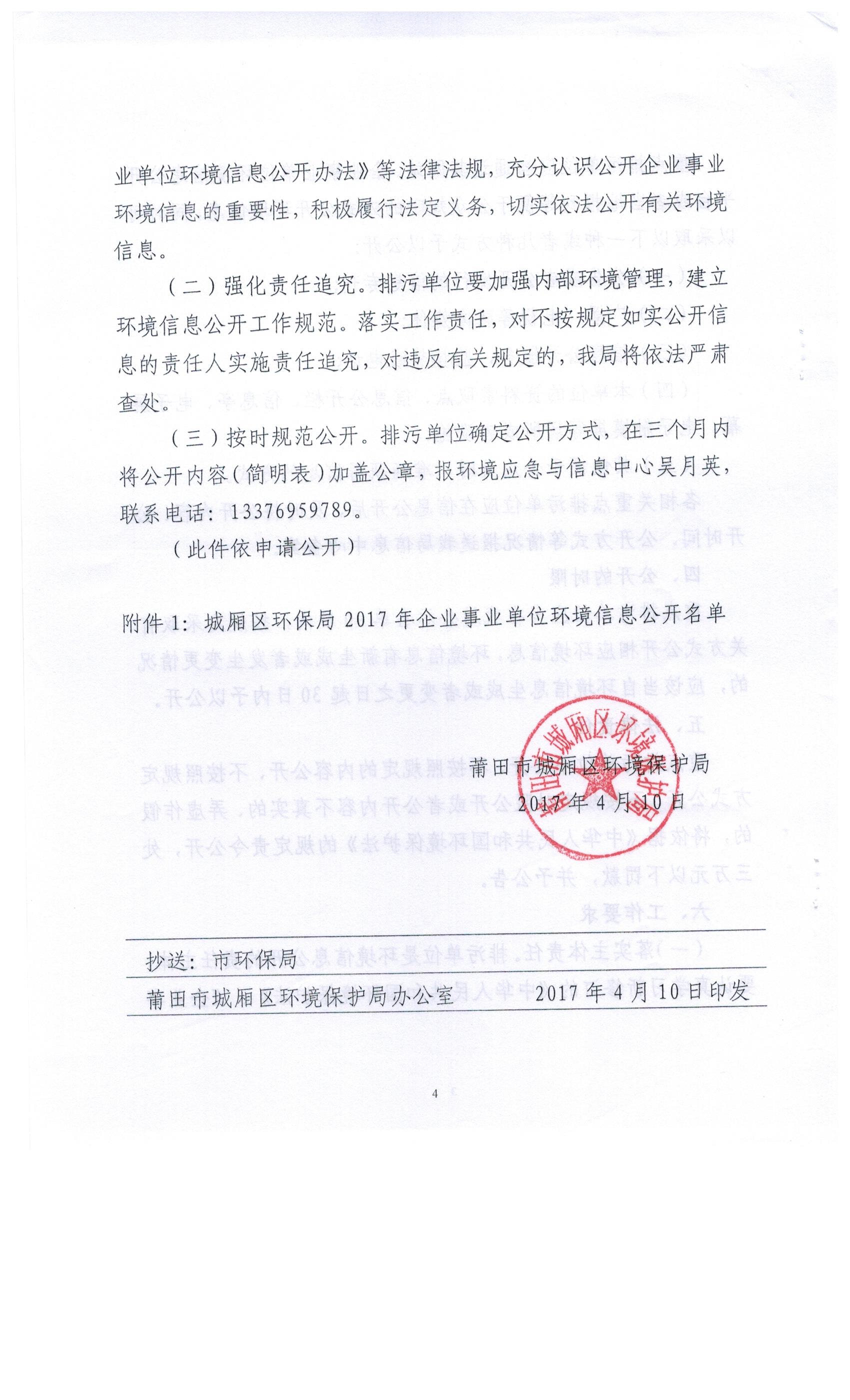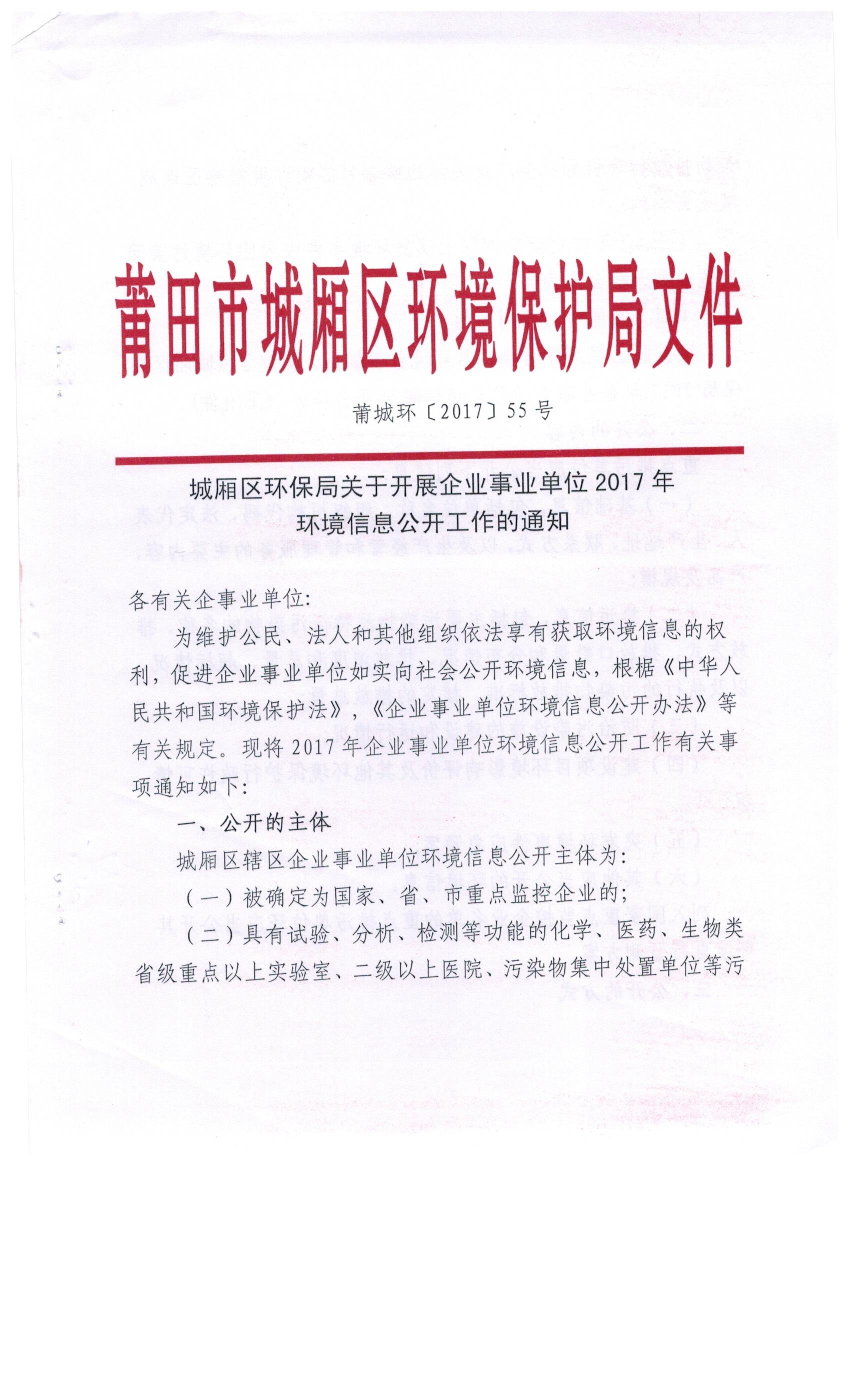 关于开展企业事业单位2017年环境信息公开工作的通知