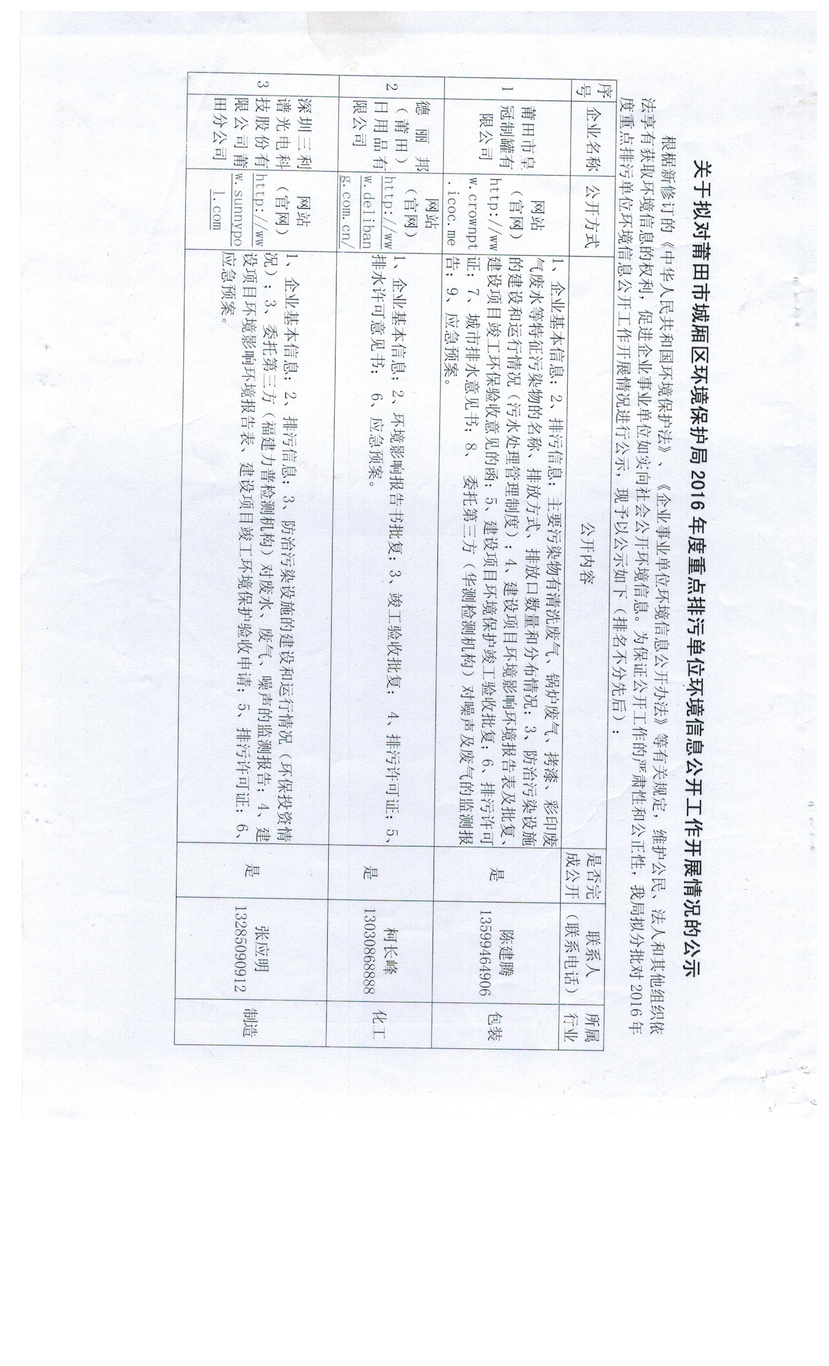关于拟对2016年度重点排污单位环境信息公开工作开展情况的公示
