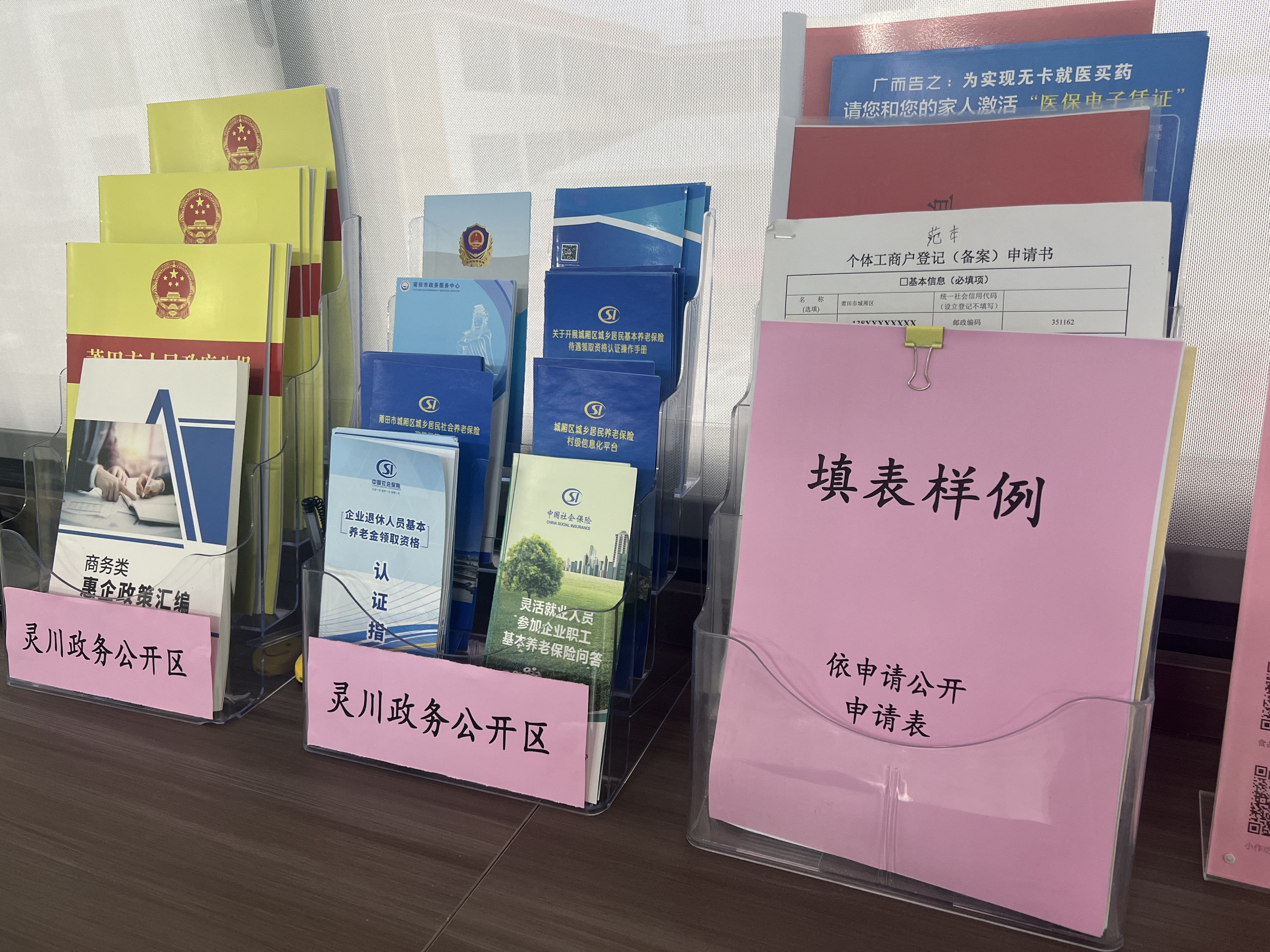 二是开设人工服务区。人工服务区配备电脑和打印机,安排专人提供相关政策咨询以及业务申请办理服务。集中提供政府信息公开申请表、填写模板等纸质资料,方便群众提交信息公开申请。