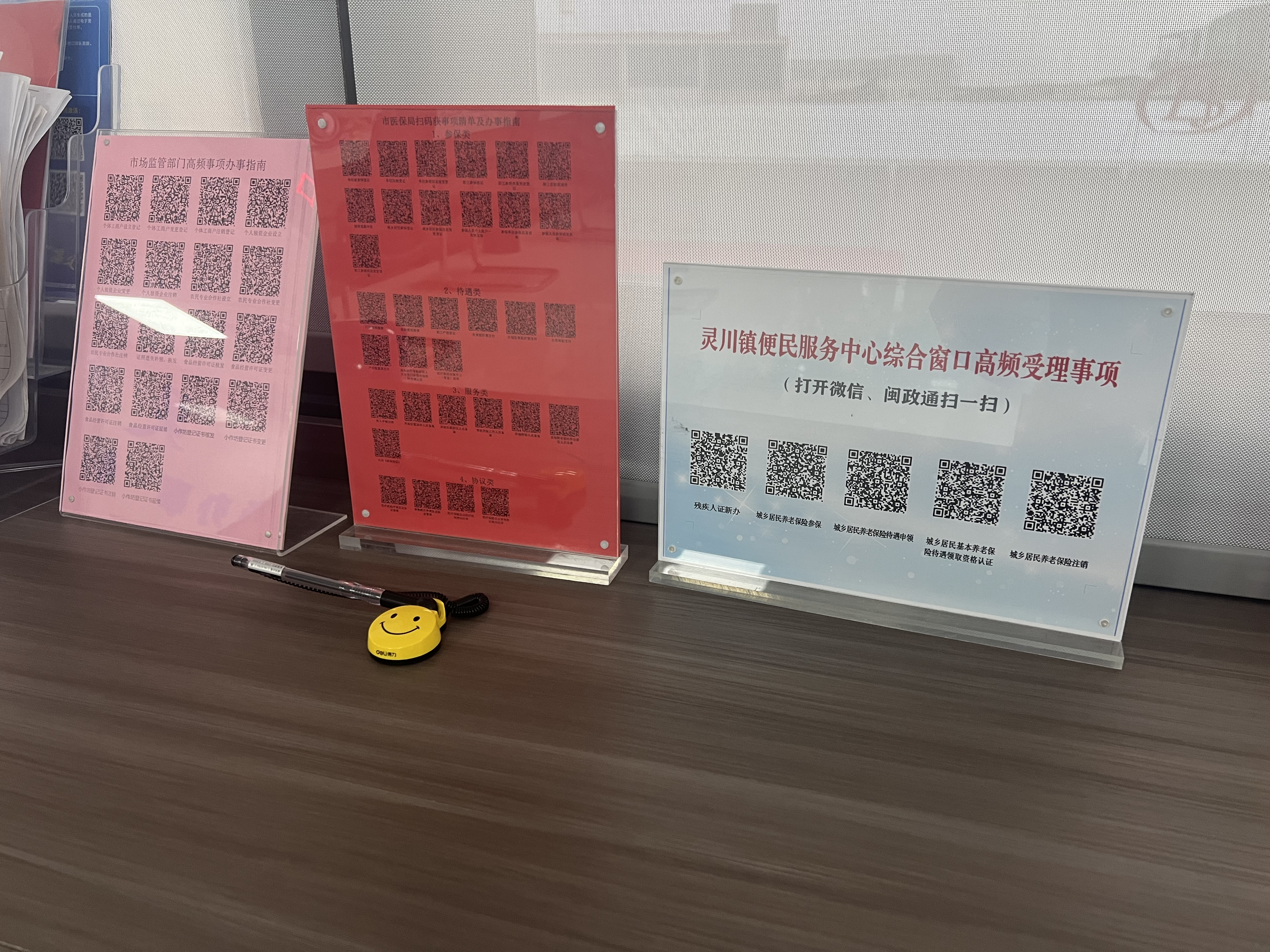 各类服务指南查阅:摆放各类所办理审批服务事项办事指南(二维码),公开办理事项的审批主体、办理依据、申报材料、工作流程、收费标准、办理时间等内容,按服务类型分为利企类、便民类,方便企业、群众办事。实景图如下:
