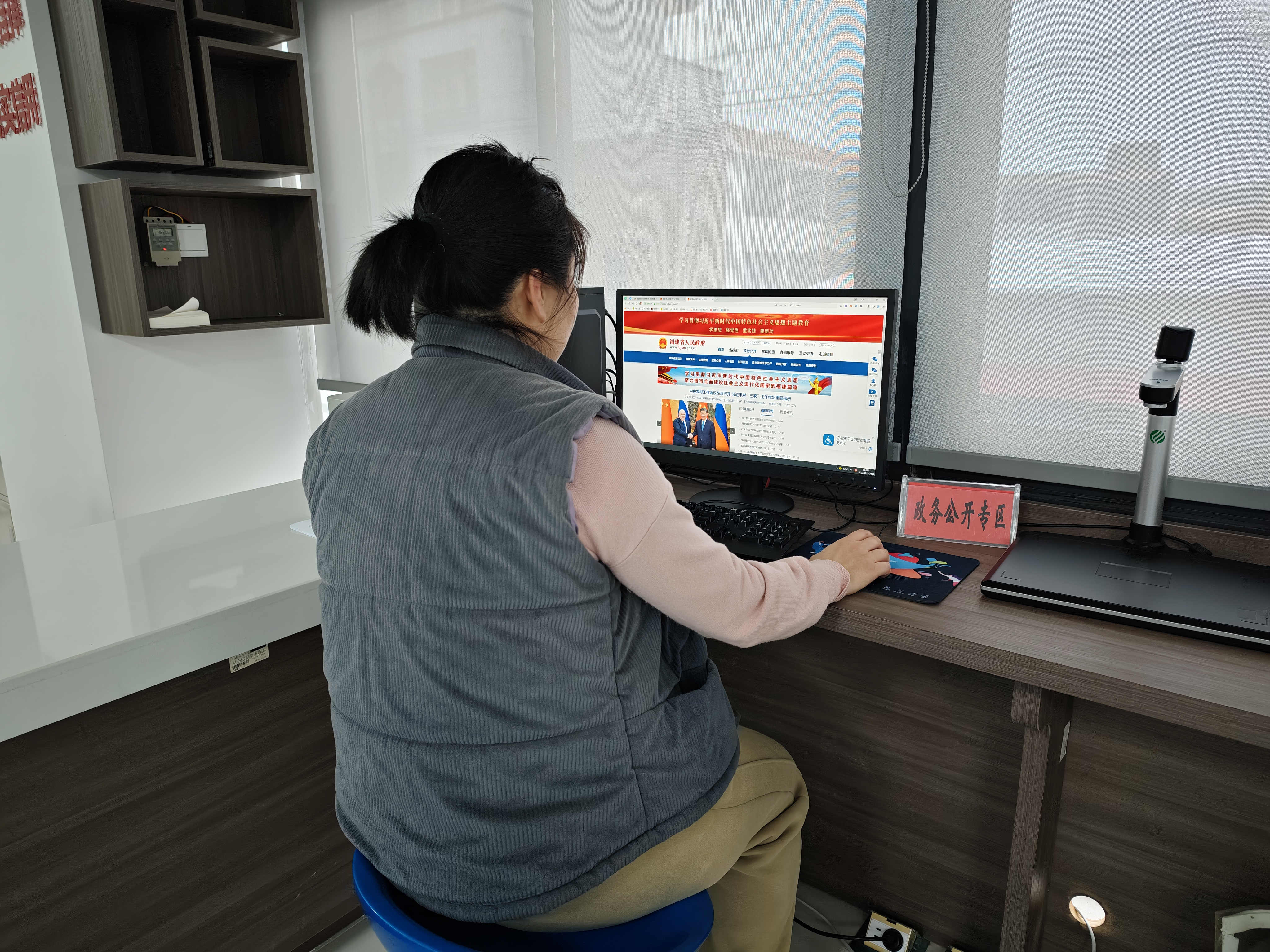 “线上+线下”服务,让群众办事更便捷。在政府信息查询区配备自助查询电脑、座椅等设备,群众可以自主登录各级政府网站查阅政策文件、查找办事服务信息等。通过自助查询电脑,满足群众线上信息查询需求,同时线下配备档案柜,可查看历年公示材料,让群众直观地了解政府信息公开情况。实景图如下: