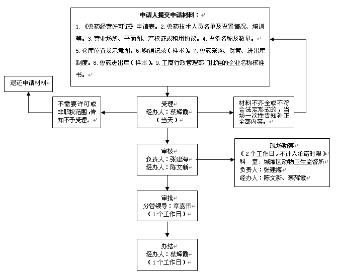 莆田市城厢区农业局《兽药经营许可证》核发审批流程图