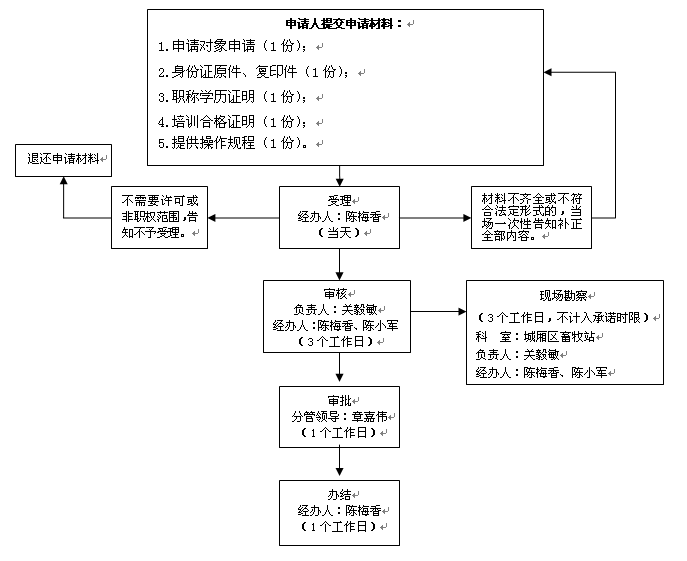 莆田市城厢区农业局《畜禽人工授精从业证书》核发审批流程图