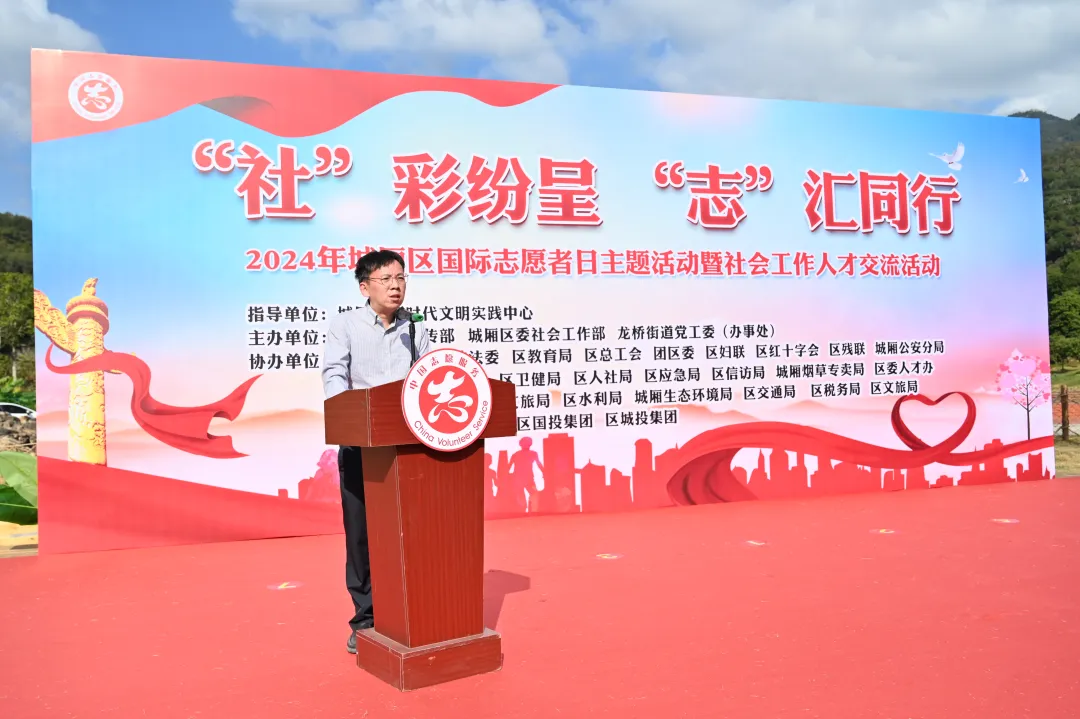 黄云鸿在致辞时,向所有参加活动的来宾和志愿者们表示热烈的欢迎,向所有志愿者致以节日的问候。他指出,近年来,城厢区立足区位优势和资源禀赋,围绕社会所需、群众所盼,充分发挥志愿服务力量,积极开展各类志愿服务活动,志愿服务平台建设不断完善,志愿队伍不断壮大,志愿品牌持续擦亮。他要求,要以此次活动为契机,深入学习宣传贯彻党的二十届三中全会精神,充分发挥志愿服务品牌带动效应,全面推进城厢区新时代文明实践工作,用心用情宣传群众、关心群众、服务群众,继续为加快建设“山水格局、人文宜居”新城厢添砖加瓦。