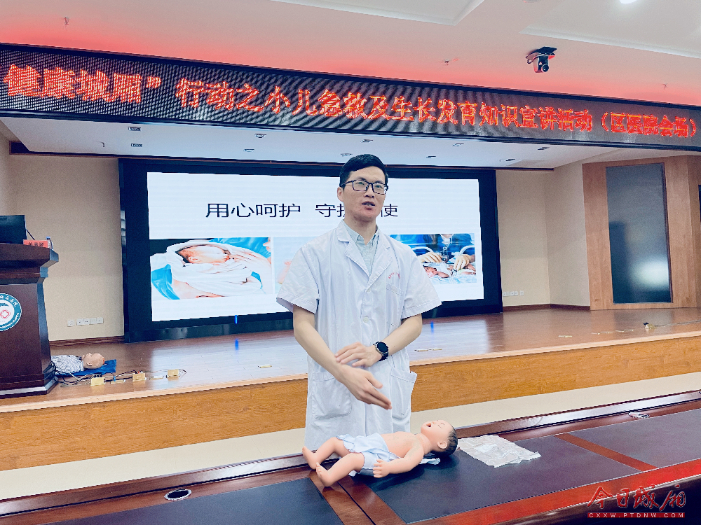 主管护师蔡国英利用模拟人,现场示范操作婴儿心肺复苏。