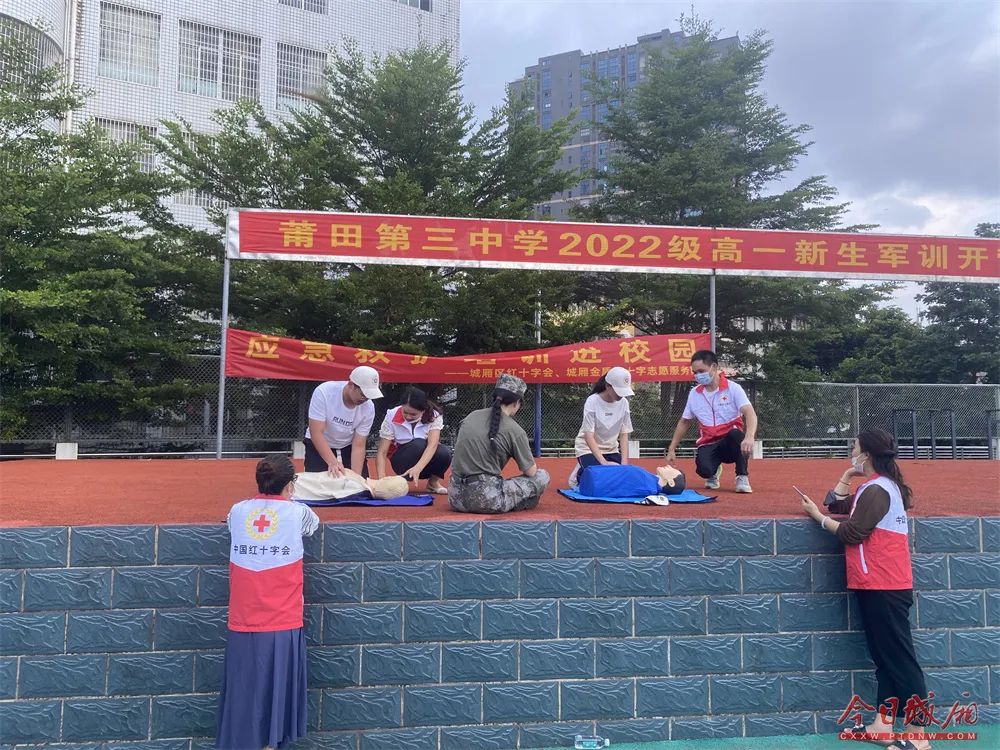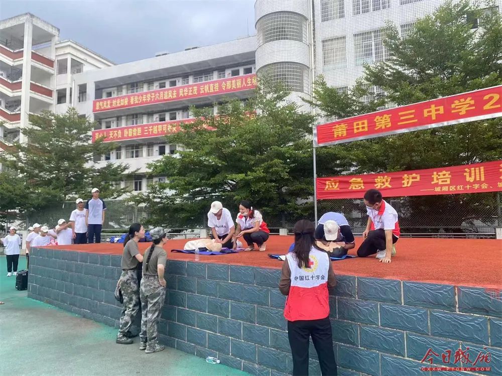 当日,在莆田三中大操场上,红十字救护师为莆田三中2022级900余名新生,开展应急救护培训。培训现场,教师、教官、学生反响热烈,积极参与,互动频频,收到了预期的培训效果。