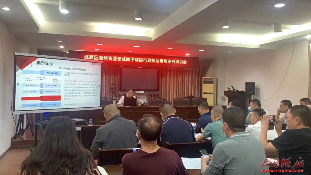 11月18日下午,城厢区自然资源局举办赋予镇人民政府街道办事处行政执法事项业务培训会。各镇街分管领导、综合执法队长、业务经办人员以及区自然资源局监察大队等参加。