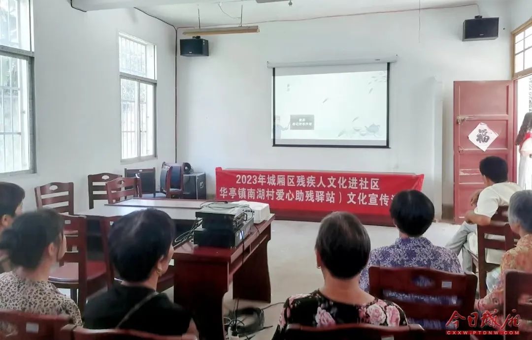 近日,为丰富我区“爱心助残驿站”内残疾人的精神文化生活,倡导全社会扶残助残的良好风尚,城厢区残联分别在华亭镇云峰村、南湖村组织开展“残疾人文化进驿站”文化宣传活动。