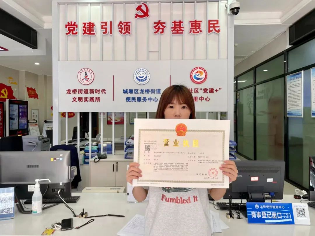 25日,棋甘日用百货商行经营者胡女士在城厢区市场监管局龙桥窗口领取到了新营业执照,这是莆田市发出的首张跨区域迁移个体工商户营业执照。