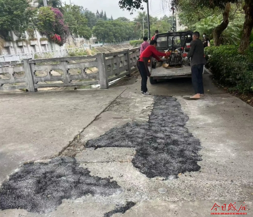 接到反映后,城厢区执法局高度重视,立即组织施工人员现场核实。经确认,该位置位于渠道旁人行步道上,不在执法局市政管养道路范围之内。但考虑到该处人行步道早晚锻炼的市民较多,存在极大安全隐患。为了避免再次出现行人摔伤等情况,区执法局主动担当,立即组织道路管养单位,对破损路面采用沥青进行修补,及时消除了道路安全隐患。