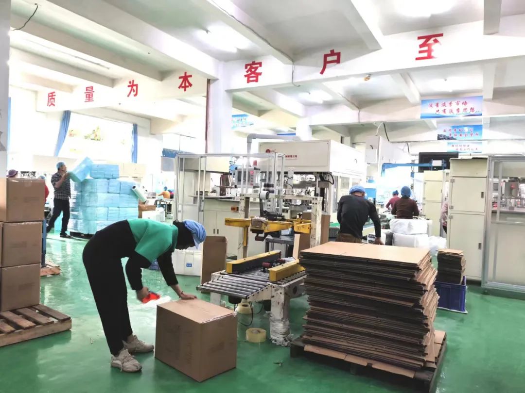 同样,福建省莆田市荔城纸业有限公司也已早早吹响开工号角。车间内,工人们熟练地操作着机器,认真地完成每道工序,每个步骤;车间外,一箱箱妇幼产品从这里出发运往各地。据悉,福建省莆田市荔城纸业有限公司以生产卫生巾、尿垫等产品为主,拥有“佳爽”、“Casoft”等多个品牌,产品在国内外均有一定的市场,企业订单较为充足,车间共有6条生产线,80%的员工已返岗到位,4条生产线已正常开工生产,产能率达60%,公司计划招收大量普工,确保按期交货。