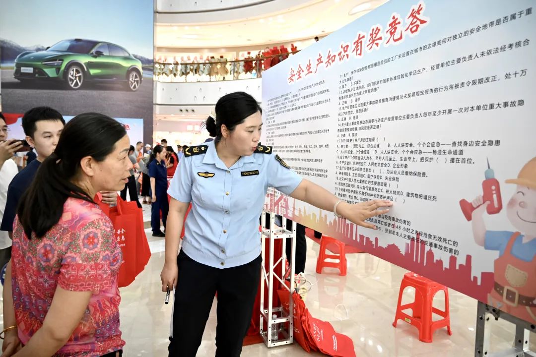 活动现场,区应急管理局、消防救援大队等19个单位,通过设立现场咨询台、摆放展板、发放安全生产宣传资料、有奖竞答等方式,向群众宣传普及生产、道路交通、消防、用电、燃气等方面安全知识,面对面解答群众疑问。值得一提的是,省“人民满意的公务员”倪梅娟也参与现场宣传,面对面为群众讲解食品安全等相关知识,守护群众“舌尖上的安全”。
