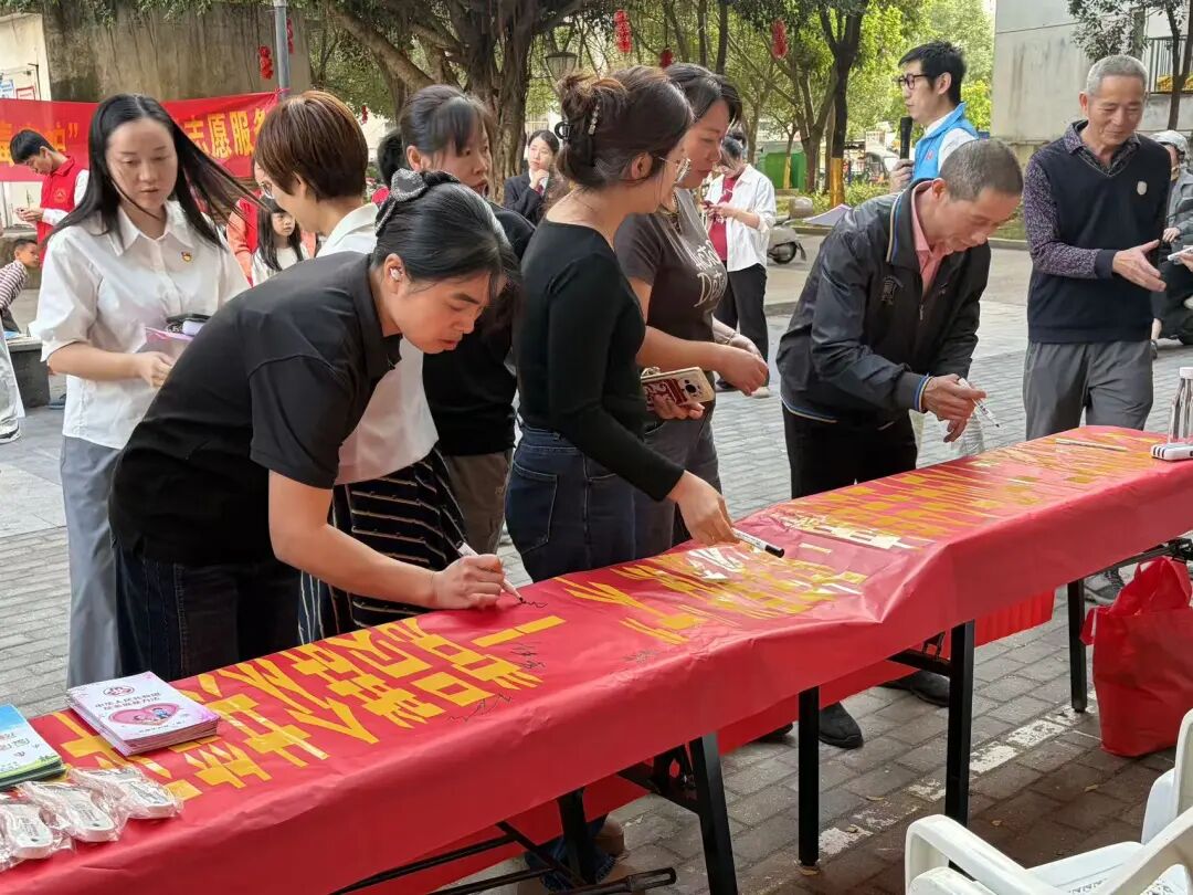 户外实践环节,区妇联充分发挥“联”字作用,将法治宣传与群众需求深度融合,让党员与居民沉浸式感受反家暴宣传氛围。区妇联副主席郑婷婷带领党员代表宣读《反家暴党员倡议书》,号召全体党员践行“三主动”承诺(主动学习法律、主动干预家暴、主动帮扶受害者),现场30余名党员群众在“对家暴说‘不’”巨型横幅上签名响应。针对家暴受害者维权难点,妇联联合区法院设立“反家暴法律咨询台”,党员志愿者与法官共同为群众讲解“保护令申请流程”“证据保存要点”,发放《反家暴法》宣传册及党的二十届四中全会精神解读折页100余份。活动创新设计的“反家暴知识闯关嘉年华”更成为活动亮点:“误区粉碎机”通过互动游戏纠正“家暴是家务事”等错误认知,“证据拼图挑战”指导群众模拟构建维权证据链,“维权迷宫”则以情景体验形式普及求助路径。