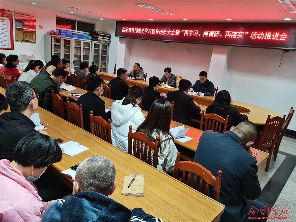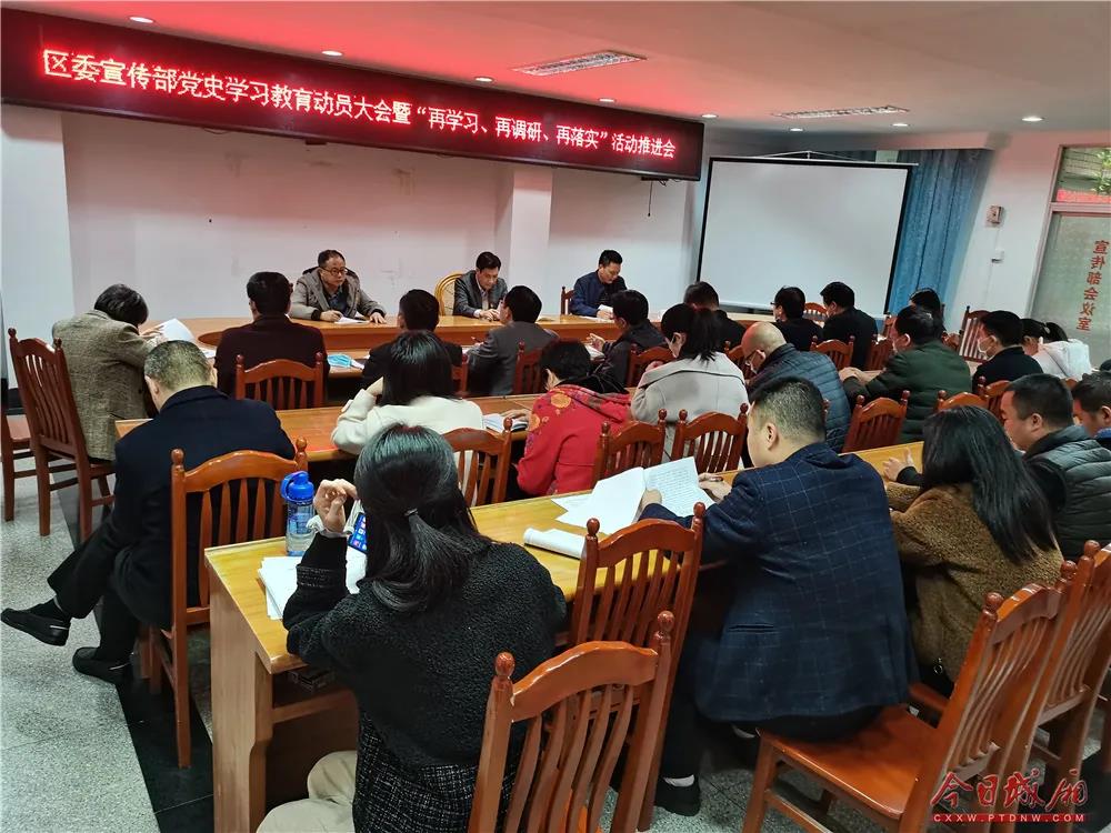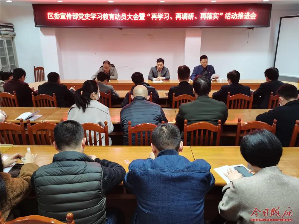 3月4日下午,城厢区委宣传部召开党史学习教育动员大会暨“再学习、再调研、再落实”活动推进会。会议传达学习贯彻习近平总书记在党史学习教育动员大会上的重要讲话精神,传达学习省、市、区党史学习教育动员大会等相关会议精神,对区委宣传部党史学习教育工作进行安排部署。区委常委、宣传部长苏德权出席会议并作动员讲话。
