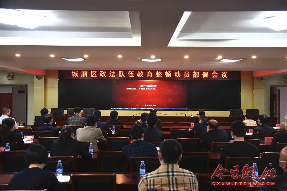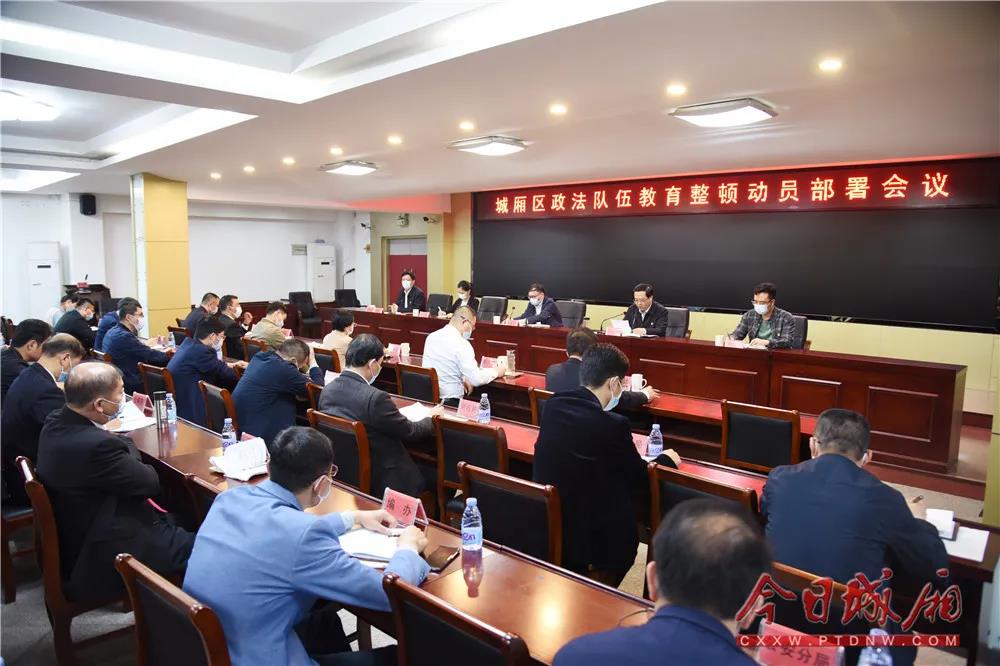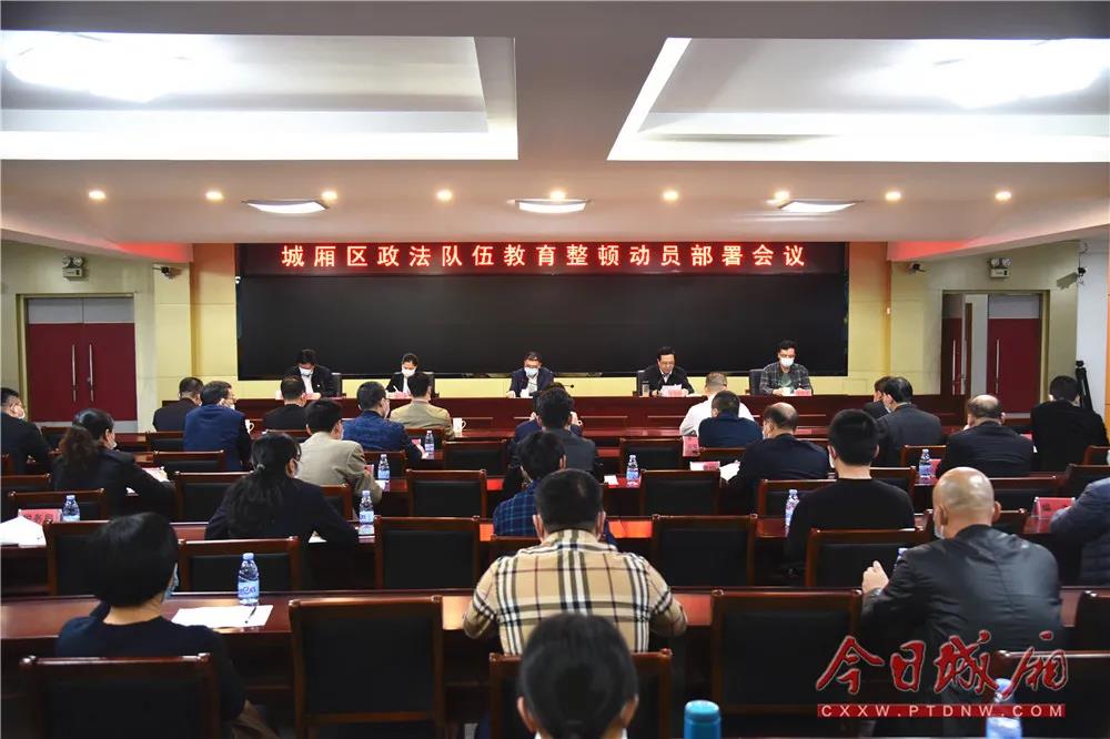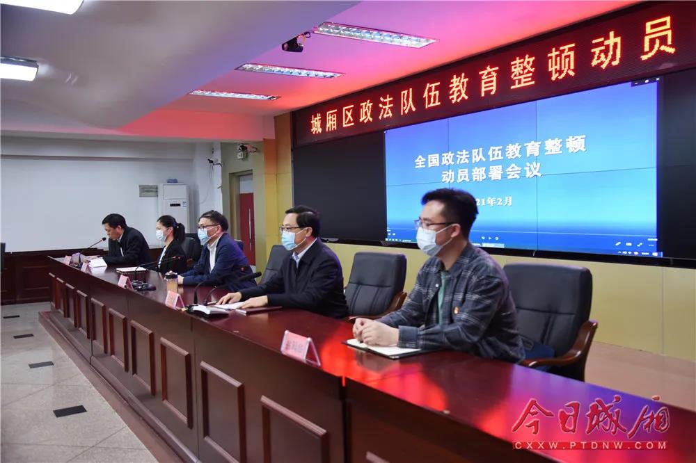 3月15日下午,城厢区政法队伍教育整顿动员部署会召开。省政法队伍教育整顿第六指导组副组长叶孝祖出席并讲话,区委书记、区政法队伍教育整顿领导小组组长王文才出席并作部署讲话,区委常委、政法委书记陈庆王主持会议。