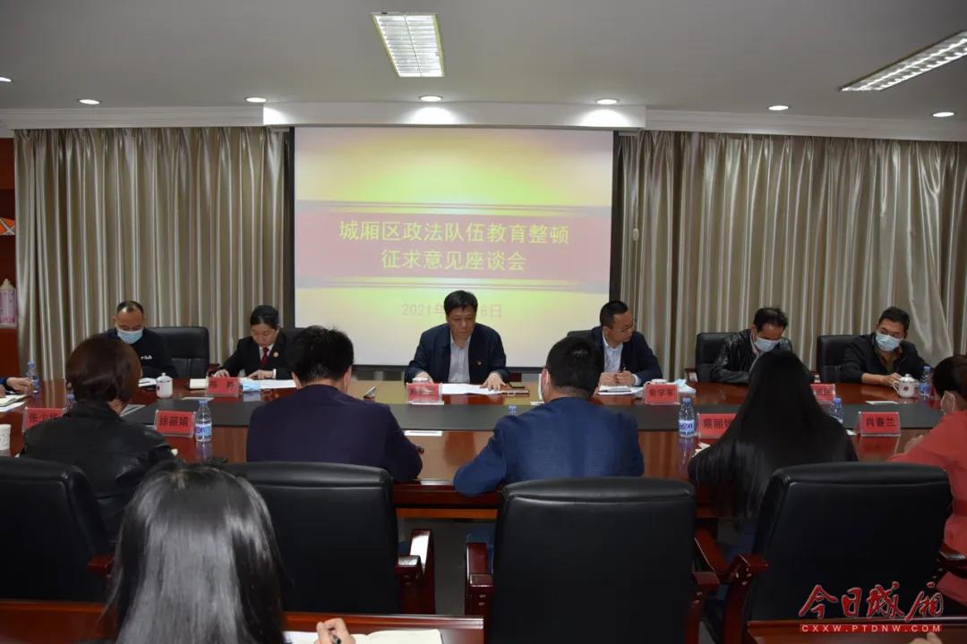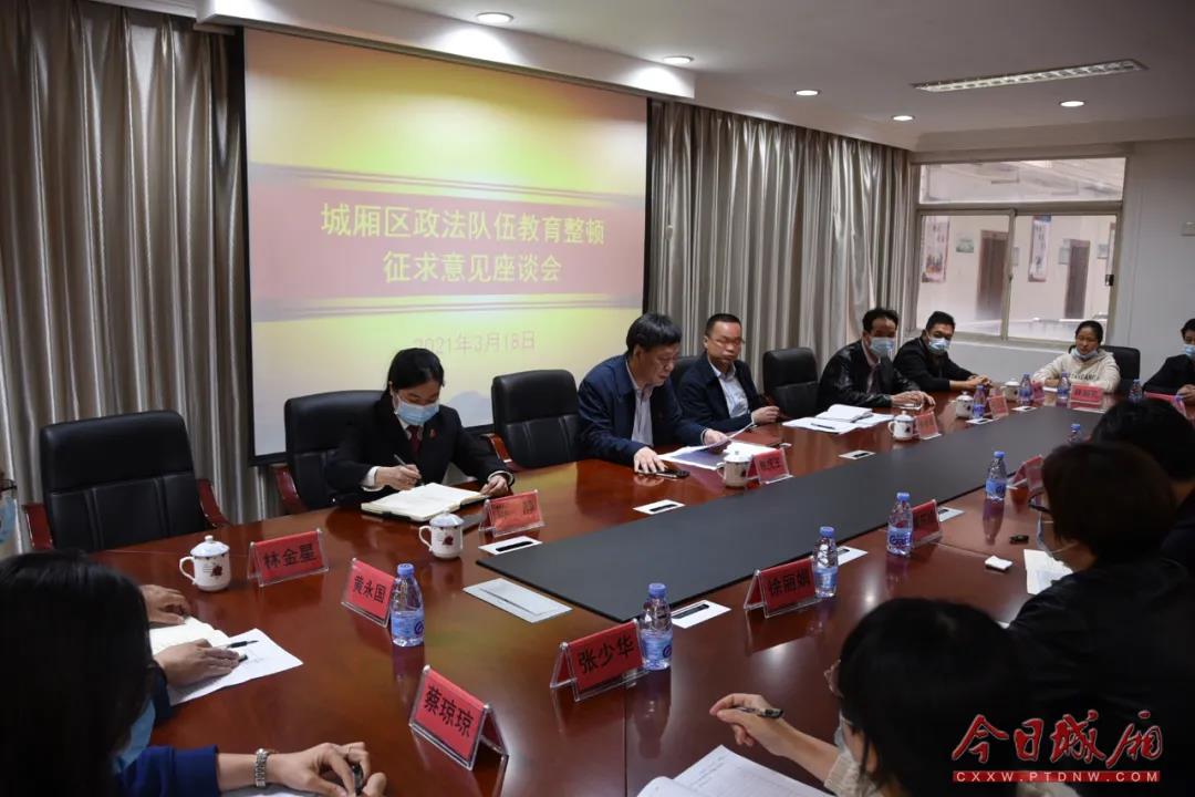 3月18日,城厢区召开政法队伍教育整顿征求意见座谈会,区委常委、政法委书记、区政法队伍教育整顿领导小组副组长陈庆王出席。