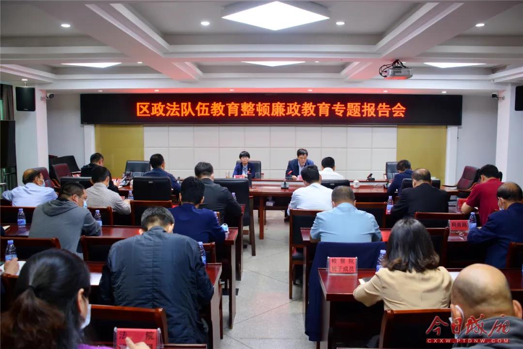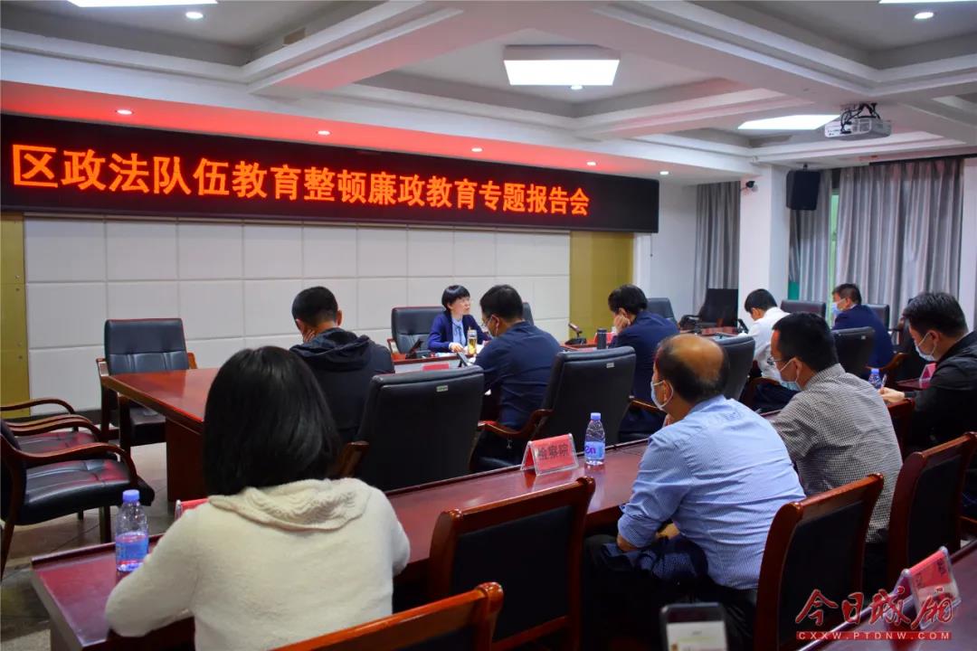 近日,城厢区政法队伍教育整顿廉政教育报告会召开。区委常委、区纪委书记、区监委主任、区政法队伍教育整顿领导小组副组长余丽红作专题报告,区委常委、政法委书记陈庆王主持会议。