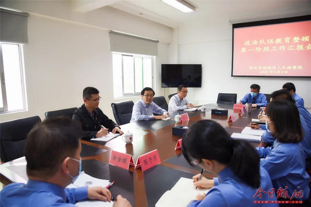 4月2日下午,结合党史学习教育和“再学习、再调研、再落实”活动,区委书记王文才带队到区委政法委、法院、检察院、公安分局、司法局等政法各单位,实地调研督导政法队伍教育整顿开展情况。