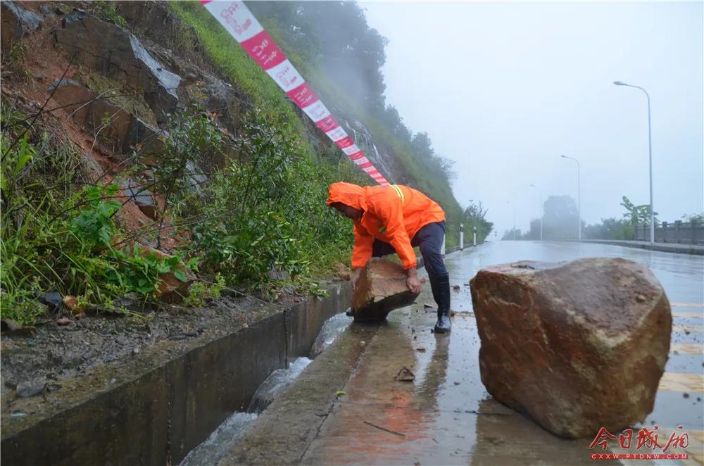 “快!过来帮忙,这边还有一棵树木。”8月6日一大早,在台风“卢碧”带来的疾风骤雨中,城厢区交通局党员、工程股负责人蔡晓华和道路巡查队队员合力将倒在国道上的树木搬至路边。
