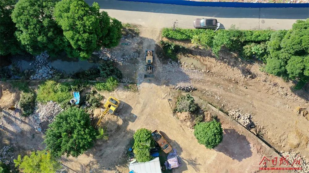眼下时节进入枯水期。龙桥街道洋西村忙趁时机抓紧洋西溪生态补水工程施工。河岸上,挖掘机挥舞清杂;河道里,工人们踩着泥泞清淤。