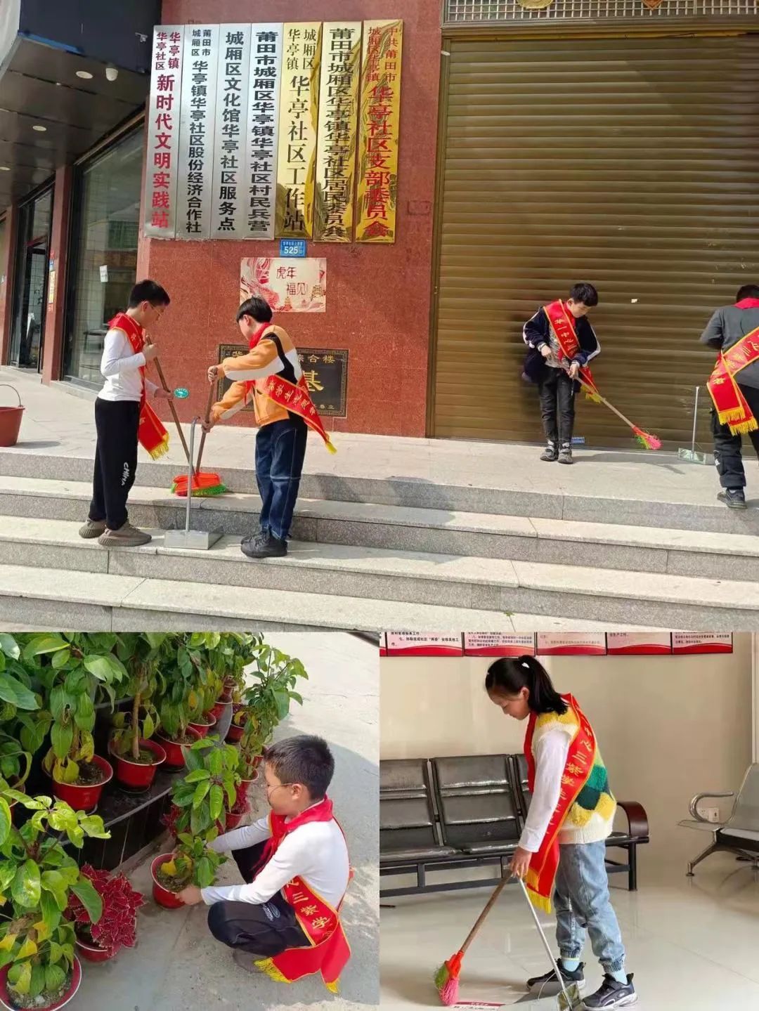 华亭第一中心小学少先队志愿者们走进社区、公共文化场所和新时代文明实践所等,发扬雷锋不怕苦不怕累的精神,擦的擦、洗的洗、扫的扫,将在各个角落里的垃圾都清理得干干净净,争当一名“小雷锋”。