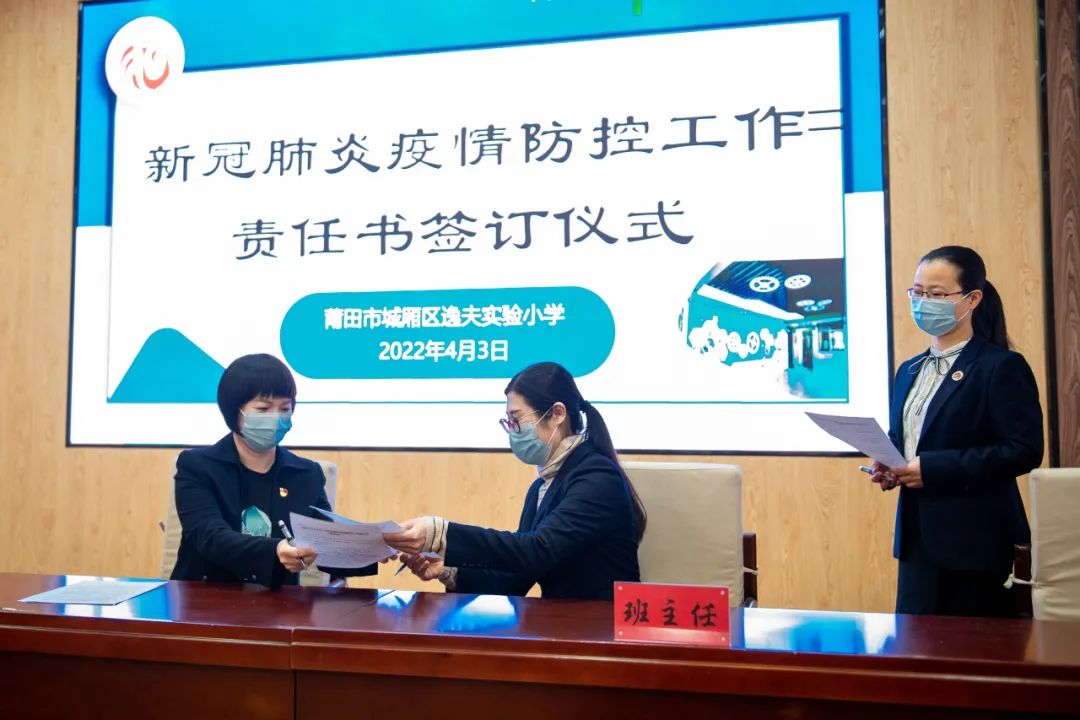 4月3日上午,在城厢区教育系统党委指导下,城厢区逸夫实验小学举行新冠肺炎疫情防控工作责任书签订仪式,该校与班主任、班主任与学生家长(监护人)层层签订责任状,压实“四方责任”、落实“四早措施”。