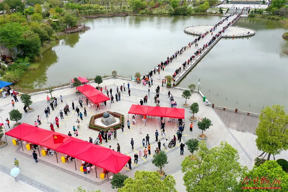 南湖公园核酸采集点秩序井然。