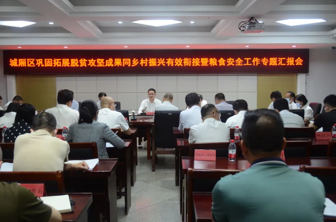 5月31日,城厢区召开巩固拓展脱贫攻坚成果同乡村振兴有效衔接暨粮食安全工作专题汇报会,听取巩固拓展脱贫攻坚成果同乡村振兴有效衔接有关工作进展情况及粮食安全责任制工作落实情况汇报,部署下一步具体工作。区长王文晖主持会议并讲话,区领导黄美光、郭健明、蒋万顺、王刚等出席会议。