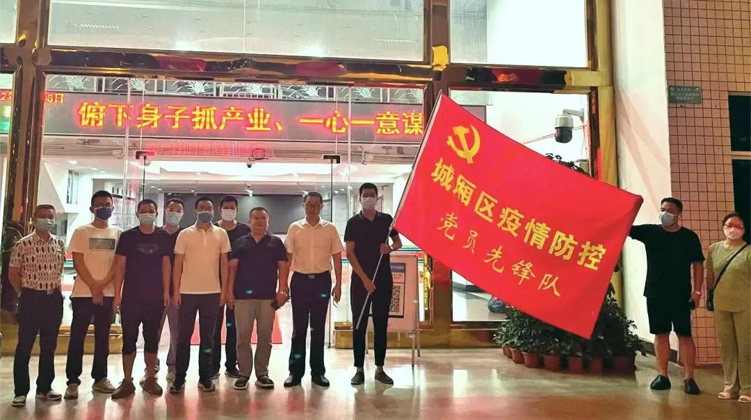 7月8日晚,城厢区紧盯全市疫情形势变化,闻令而动、迅速行动,第一时间激活应急指挥体系,火速集结12名党员干部,组成疫情防控党员先锋队,在夜色中奔赴仙游方舱隔离点,共筑抗疫“红色防线”。9日早上七点,第二批由24名党员干部组成的疫情防控党员先锋队迅速出动,让党旗在抗疫一线高高飘扬。