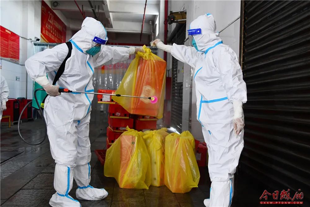 现场模拟疫情出现后的场所封控、组织人员核酸检测、食品封存、物品销毁、终末消毒等场景。在演练过程中,各点位工作人员分工明确、有条不紊,各项工作有力有序、有效开展,达到了预期目标。