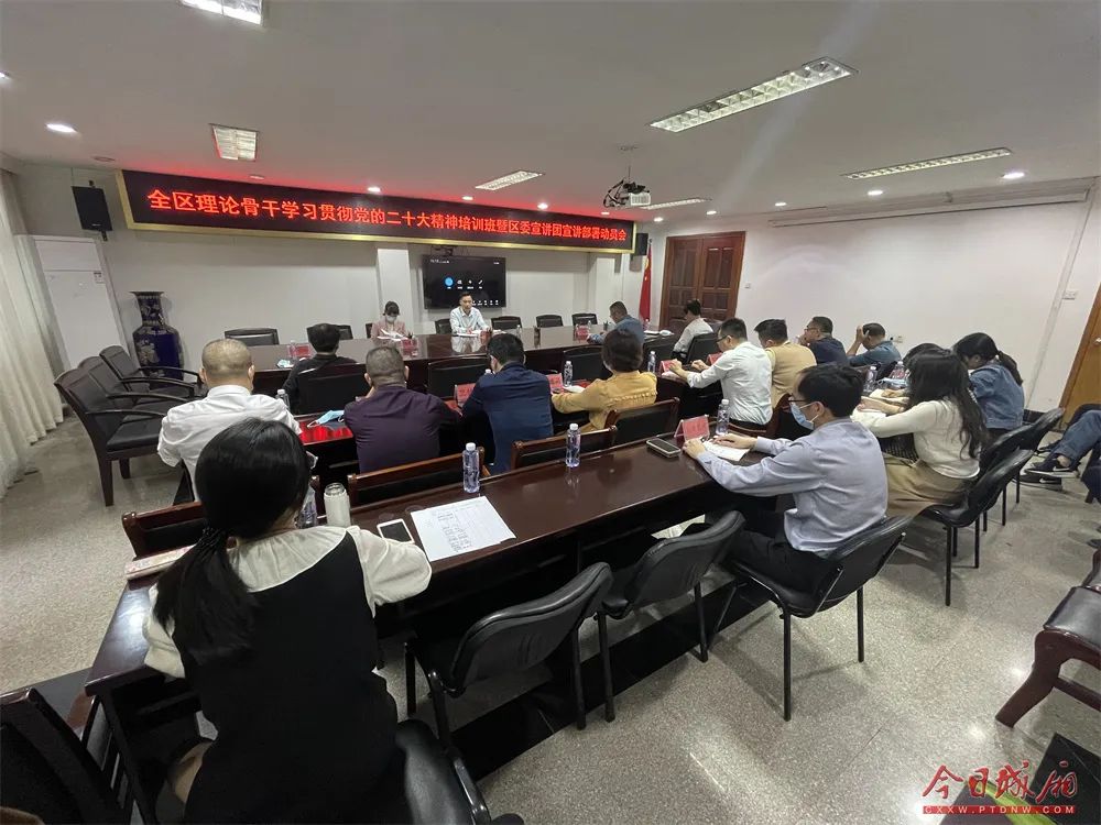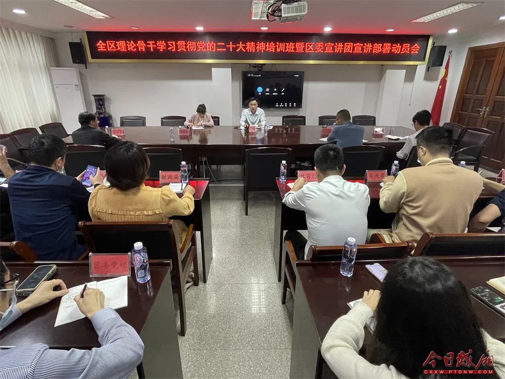 11月10日,城厢区组织收听收看全市理论骨干学习贯彻党的二十大精神培训班暨市委宣讲团宣讲部署动员电视电话会议后,紧接着召开全区理论骨干学习贯彻党的二十大精神培训班暨区委宣讲团宣讲部署动员会。区委常委、宣传部长苏德权出席会议并讲话。