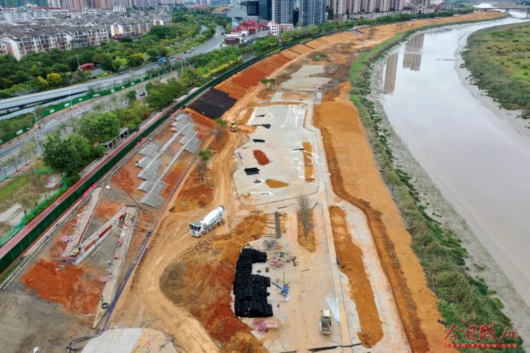 连日来,在木兰溪十里风光带一期工程项目“八二一”大桥北两侧堤外滩地建设现场,沿线风光节点“八二一”人民广场(左岸段)加快建设,目前已完成土地平整,将对硬化地进行改造,通过引水工程形成景观水塘。