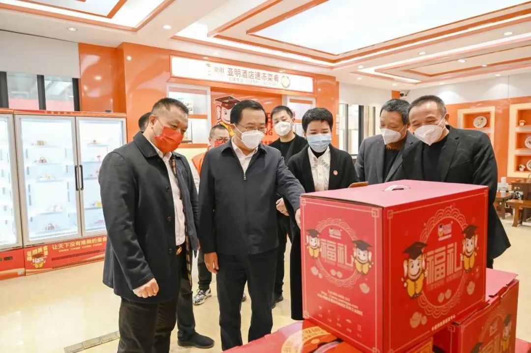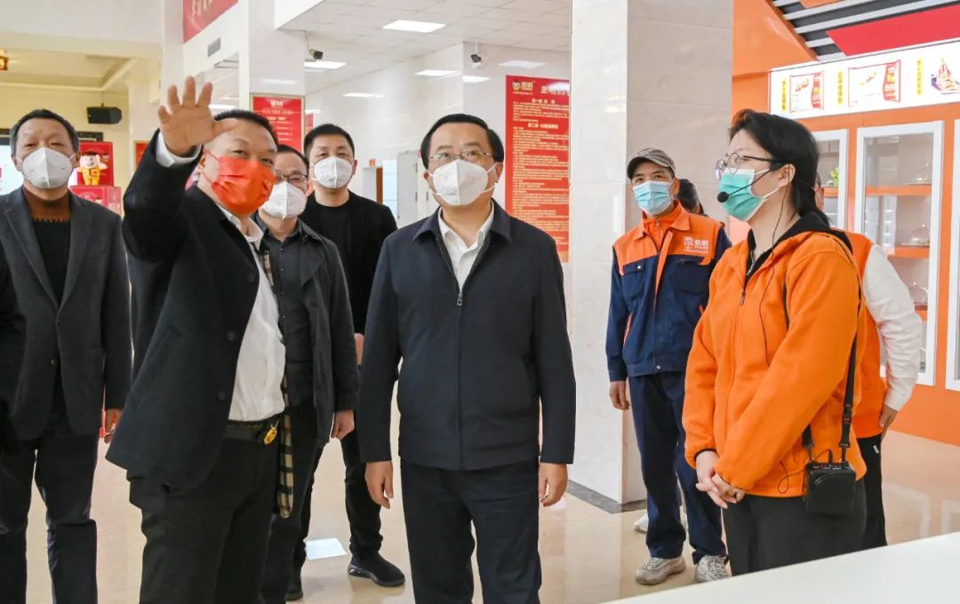 在亚明食品有限公司,王文才详细询问企业新阶段疫情防控、安全生产、食品安全等各项企业安全生产责任制落实情况,并深入生产车间,认真察看日常安全管理、消防设施运行、现场环境卫生等情况,对下一步安全生产工作提出具体要求。