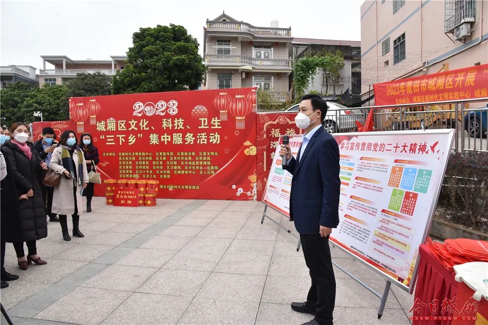 据悉,今年城厢区文化科技卫生“三下乡”集中服务活动旨在深入学习宣传贯彻党的二十大精神,充分发挥文化科技卫生“三下乡”活动的品牌效应和示范作用,深入实施乡村振兴战略,进一步动员社会各方力量积极参与新时代“三农”工作,营造全社会关注农业、关心农村、关爱农民的浓厚氛围。