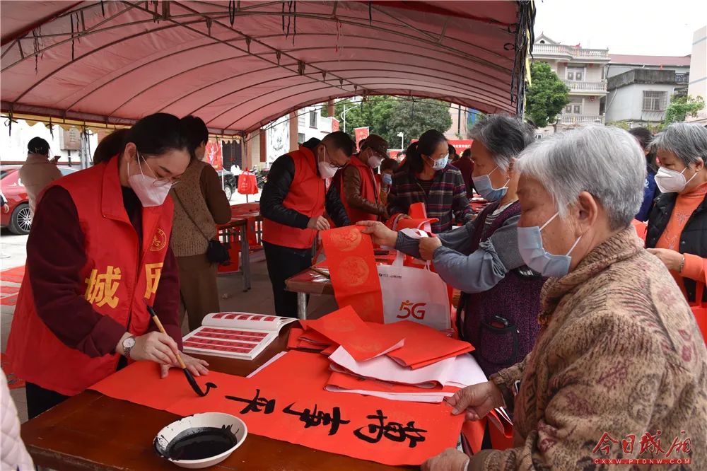 据介绍,此次的城厢区文化科技卫生“三下乡”集中服务活动,由区新时代文明实践中心、区委宣传部、区委政法委、区委文明办等29家单位主联办。当天上午,各单位根据各自的服务内容,为群众准备了内容丰富的文化科技卫生“年货”,有形势政策宣传、社科知识普及、法制宣传服务、健康医疗咨询、书写春联、便民理发等20多项惠民服务。