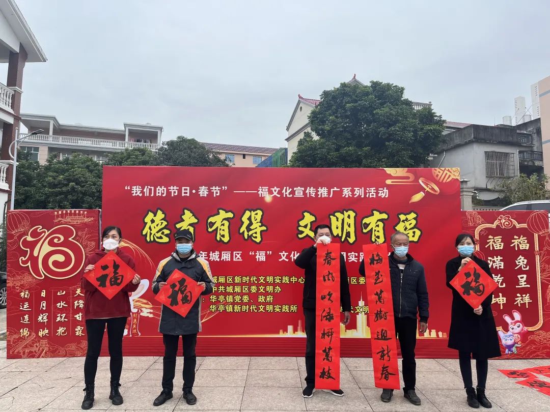 送文化科技卫生下乡,更要把服务送到百姓心坎上。在“三下乡”的政策宣讲服务区,当地的群众陈志文,为感谢志愿者们送来的新年“礼包”,现场喊起了“赞句”,感谢党和政府送来的关心和温暖。在书写春联服务区,群众陈有福拿到书法家现场手写的“福”字,十分开心,为志愿者们点起了赞。