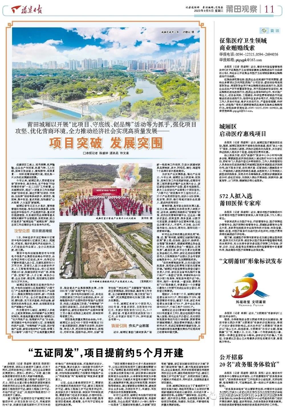 莆田城厢以开展“比项目、守底线、创品牌”活动等为抓手,强化项目攻坚、优化营商环境,全力推动经济社会实现高质量发展——
