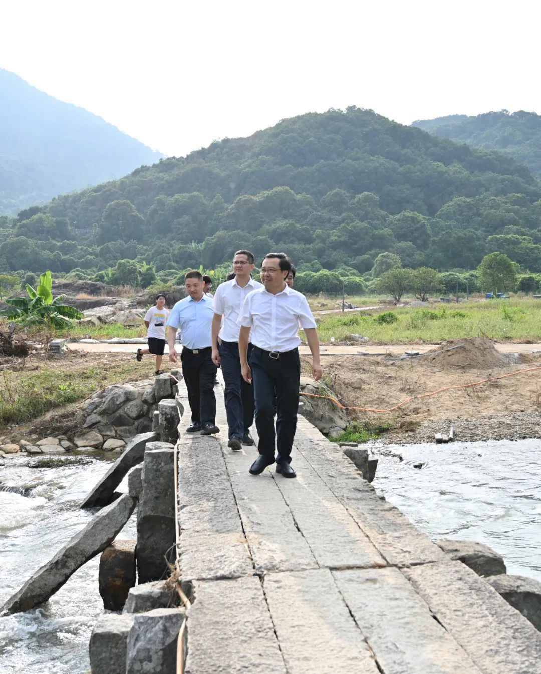 王文才一行首先来到泗华溪,详细听取水质提升、沿线环境整治等工作汇报,要求认真落实河湖长制要求,不断完善工作机制,强化日常巡河管护,推动河湖长制“有名有实”“有能有效”。在郊野公园项目现场,王文才认真察看了项目建设情况,并现场办公协调解决存在的问题。随后,王文才一行来到常太镇松峰村,实地察看了水毁道路抢修及道路交通安全防护情况,并要求有关部门务必集中时间、力量和资源,加快修复水毁道路,科学设置安全警示标识,及时消除安全隐患,确保群众出行安全。
