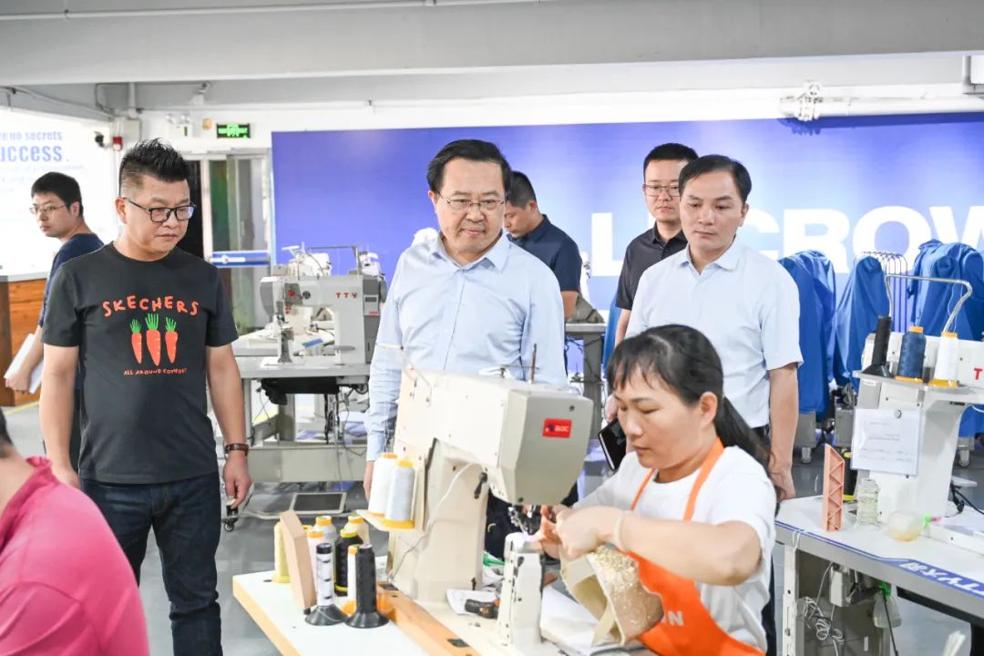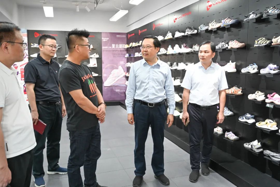 随后,王文才一行来到新路鞋业,实地察看企业生产、研发、产品展示等,详细了解鞋业产业转型升级、设计研发、品牌打造、外贸出口等情况,现场协调解决存在的困难,并勉励企业要进一步坚定发展信心,加大“智改数转”力度,打造自主品牌,提高产品竞争力,持续做强做优做大。