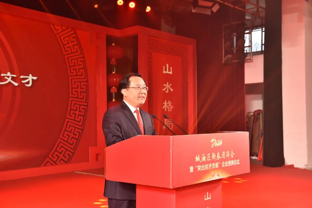 凝心聚力共奋进,踔厉奋发启新年。新春佳节临近,城厢区2024年新春团拜会暨“突出经济贡献”企业授牌仪式举行。全区各界代表欢聚一堂,表彰突出经济贡献企业,辞旧迎新共话美好未来。区委书记王文才致辞,区委副书记、区长王文晖宣读“突出经济贡献”企业名单,肖志雄、陈四海、马骏等区四套班子领导出席。
