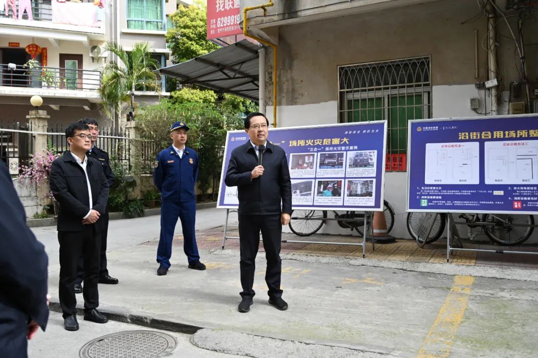 在东圳路,王文才一行实地察看“三合一”店面消防设施配备、疏散通道及安全出口设置等,详细了解各项消防安全制度和安全生产措施落实情况,并对检查中发现的消防设施损坏、疏散通道阻塞等问题提出整改意见。随后,召开安全生产现场会,听取相关部门、属地单位关于“三合一”店面日常消防安全管理、“人防、物防、技防”等工作开展情况汇报,要求各单位要紧盯关键领域、关键环节,建立详细的问题隐患排查清单和整改责任清单,确保消防安全防控不打折扣、不走过场。