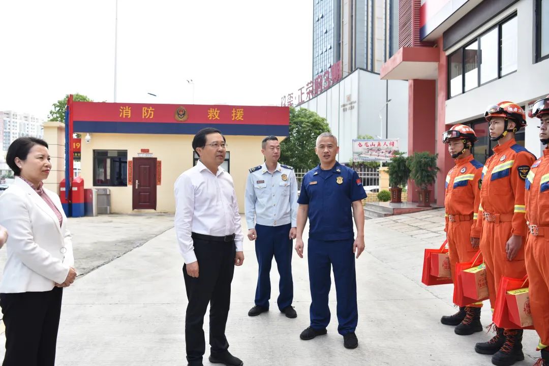 在霞林消防救援站,王文才实地察看并了解救援人员工作、生活、训练、执勤战备等情况,听取相关负责人关于“五一”假期应急救援、火灾防控工作情况的汇报,并代表区委、区政府向节日期间坚守在执法执勤一线的全体消防救援人员表示亲切慰问。