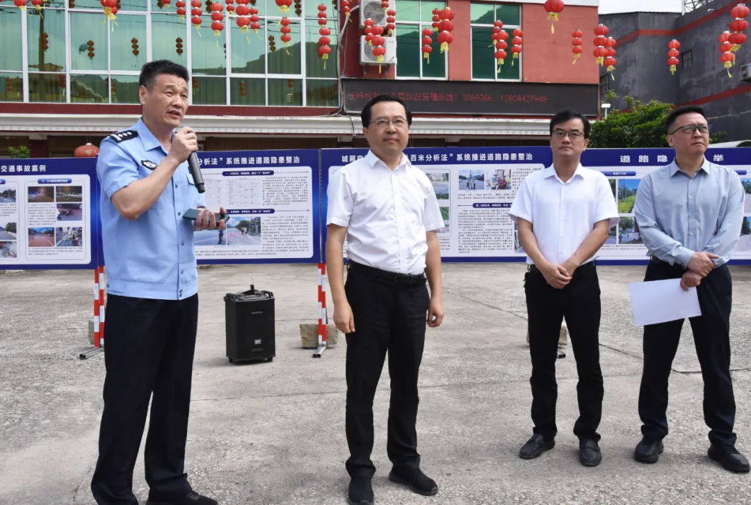 随后,王文才一行来到长岭村路段交通安全隐患整治示范点,听取城厢交警大队探索“百米分析法”,系统推进道路隐患综合整治的典型经验做法,并召开道路交通安全隐患整治现场会,要求各单位围绕各自职责,全面排查道路交通隐患,切实抓好整治整改,全面提升道路安全综合整治成效。